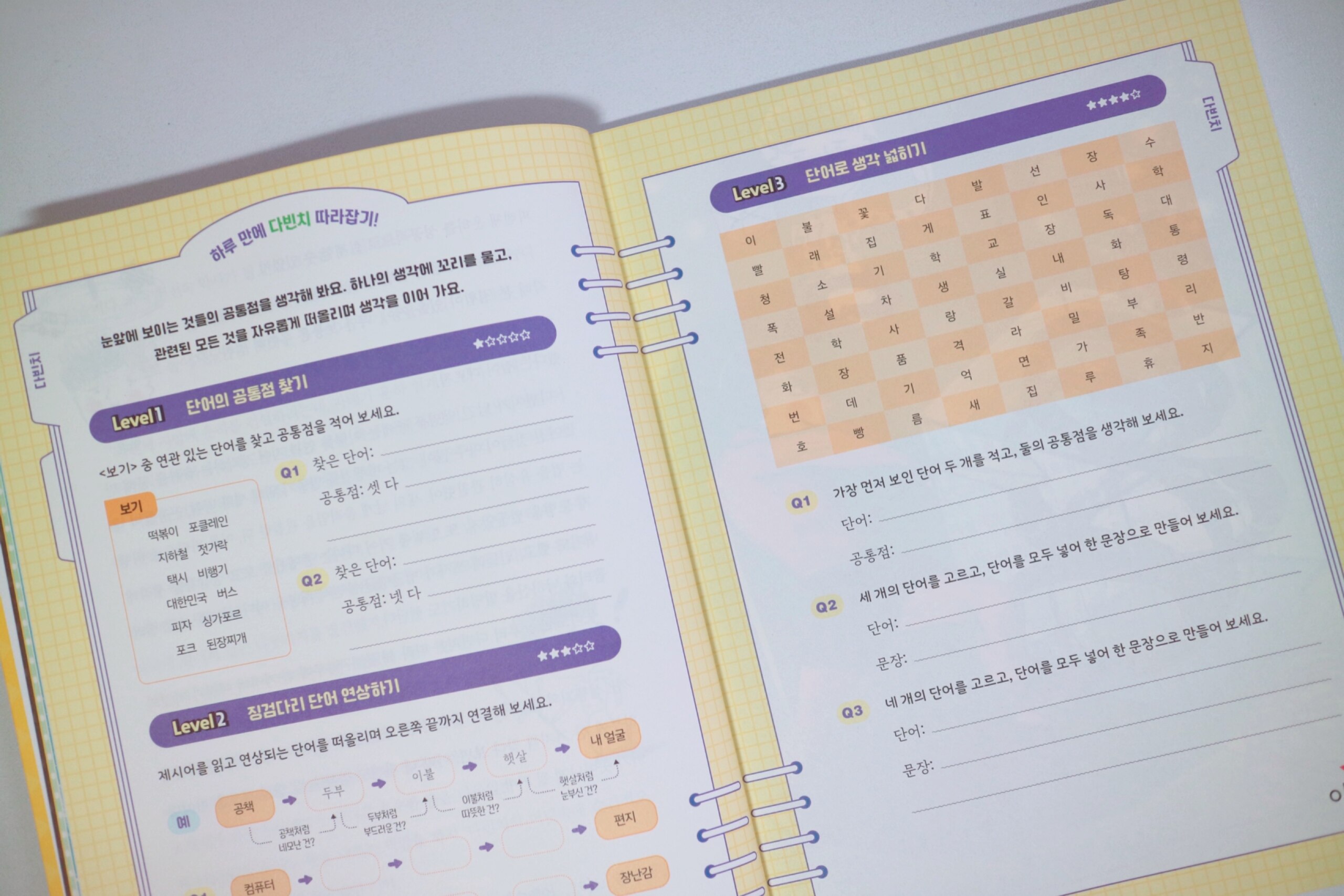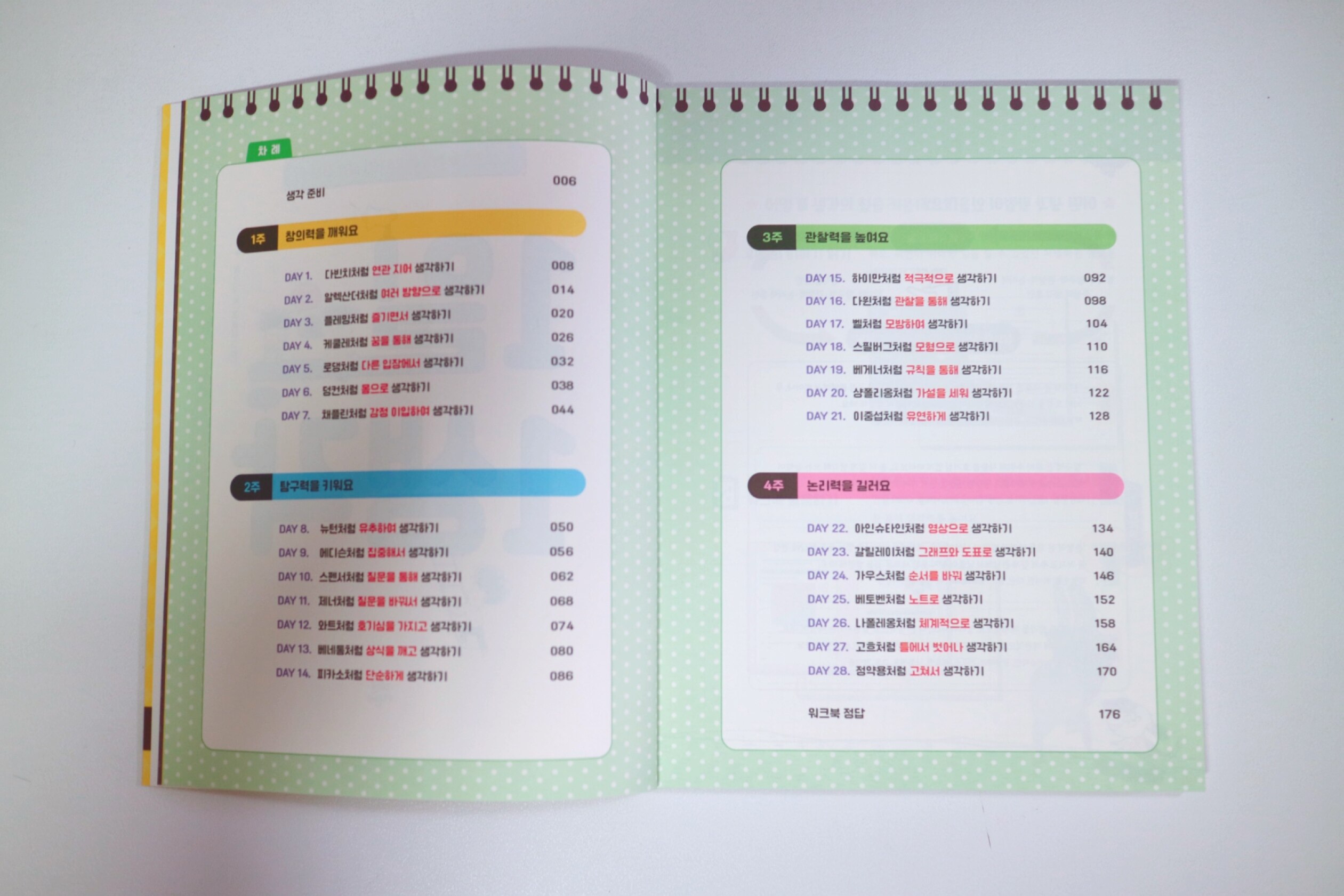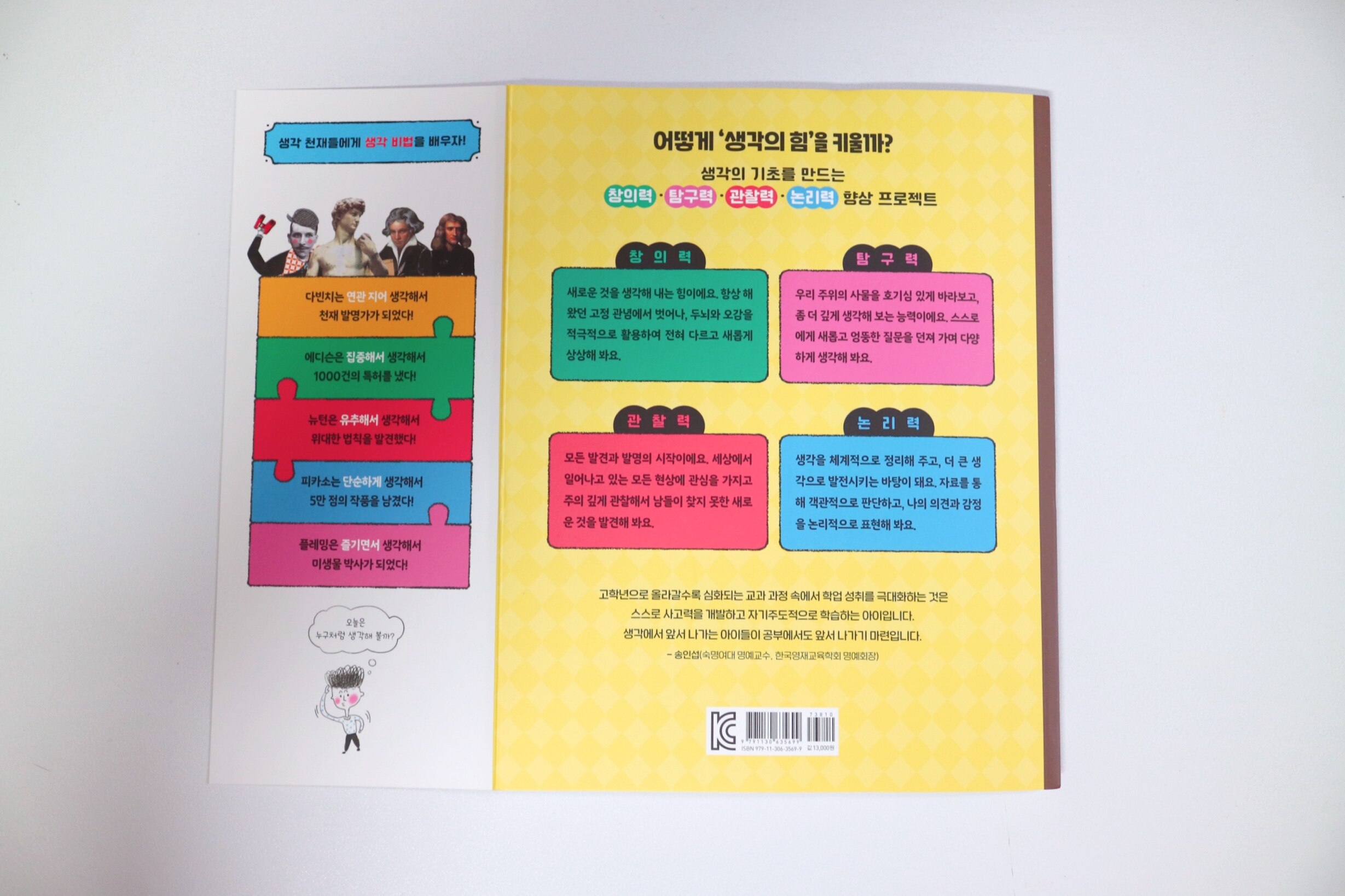 이 책에서는 어떻게 생각의 힘을 키울지 고민하고 생각의 기초를 만드는 창의력, 탐구력, 관력, 논리력 향상을 목적으로 구성되어 있어요.