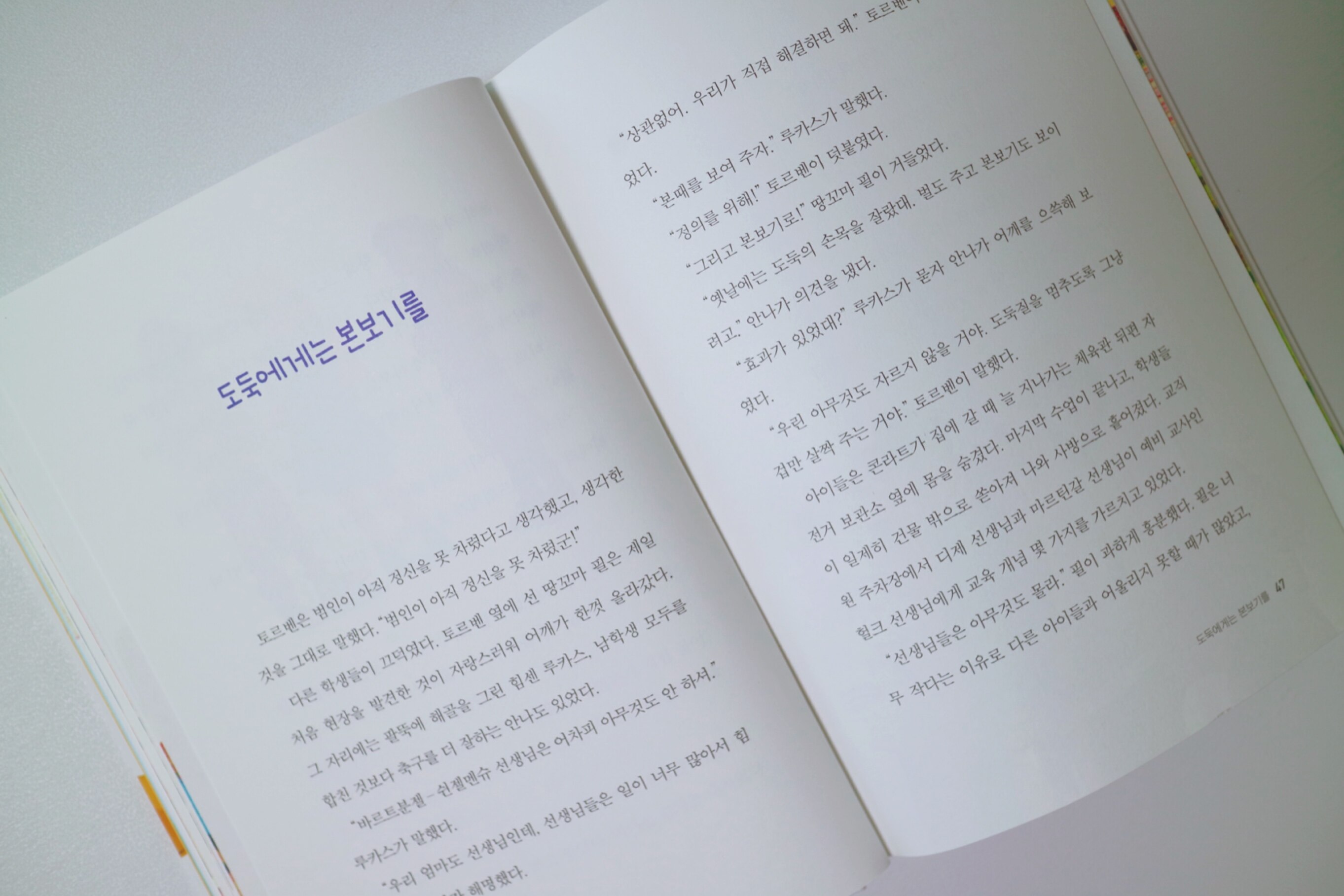 도서 ‘우리들의 재판을 시작하겠습니다’를 읽고 나면 누군가의 섣부른 의심이 억울함을 만든다는 걸 새삼 떠올리니, 누군가를 비난하는 일에 있어 휩쓸리지도 말고 더욱 조심해야 함을 아이에게 알려줘야겠다는 마음이 들었어요. 아이 역시 책을 읽으며 우리가 평화롭게 살아가기 위해서는 재판이 필요한 이유와 재판 진행 과정을 배운다는 걸 깨닫는 소중한 시간이 되었을 것 같아요.