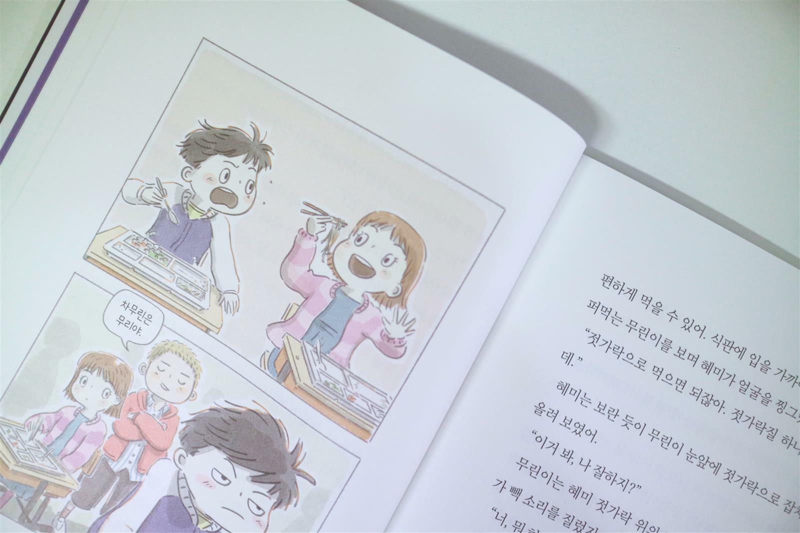 못 하겠다, 젓가락질 김화요 글 / 김민우 그림 젓가락질을 못하는 주인공 차무린. 무린이는 젓가락질 뿐만 아니라 성격도 무척 급하고 참을성이 없어 포기도 빠르다. 그런 무린이에게 우연한 기회로 젓가락이 생기는데 이 젓가락이 사실은 도깨비가 갇혀 있는 도깨비 방망이었다. 도깨비를 방망이에서 꺼내주기 위해 젓가락질을 배우기로한 무린이의 고군분투 이야기가 담겨있다. 참을성이 부족해 늘 제대로 끝까지 해낸 적이 없는 무린이지만 젓가락질을 배우고 익히는 과정을 통해 무린이의 성장을지켜보게 된다. 도서 ‘못 하겠다, 젓가락질’은 초등학교에 입학했지만 아직 젓가락질이 서툰 친구들이나 끈기가 약해 하고자 하는 것을끝까지 해내지 못하는 친구들에게 추천하고 싶다. 그 이유에는 역시 주인공 차무린이 실패와 도전을 반복하며 끝끝내 성공하는 모습을 보여주는 것에 있어서 이 책을 읽는아이들도 희망을 갖고 용기를 얻었으면 하는 마음이 들었기 때문이다. p. 113 참을성 있게 끝까지 해내면 이제까지와는 다른 세계가 펼쳐지는 것. 어느 곳이든 건너갈 수 있다는 용기가 생기는것. 마지막 페이지에 적힌 이 말처럼 모든 일이 다 그런 것 같다. 처음에 어렵고 힘들지만 이겨내어 할 수 있게 된다면 새로운경험을 하게 된다. 아이들에게 이런 경험들이 무척 중요한 것 같다. 물론 젓가락질 잘해야만 밥 잘먹는 것은 아니라지만 사소한 것 같아도젓가락질을 해내는 경험을 통해 성취감을 느끼고 나아가 도전을 겁내하지 않는 내면이 단단한 아이로 자랄 수 있을 것이라 생각한다.