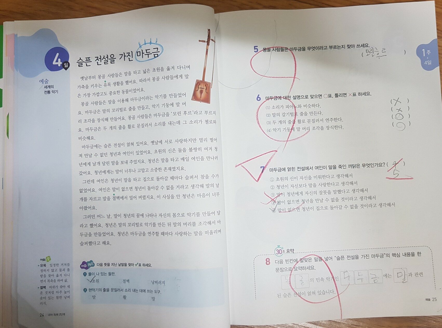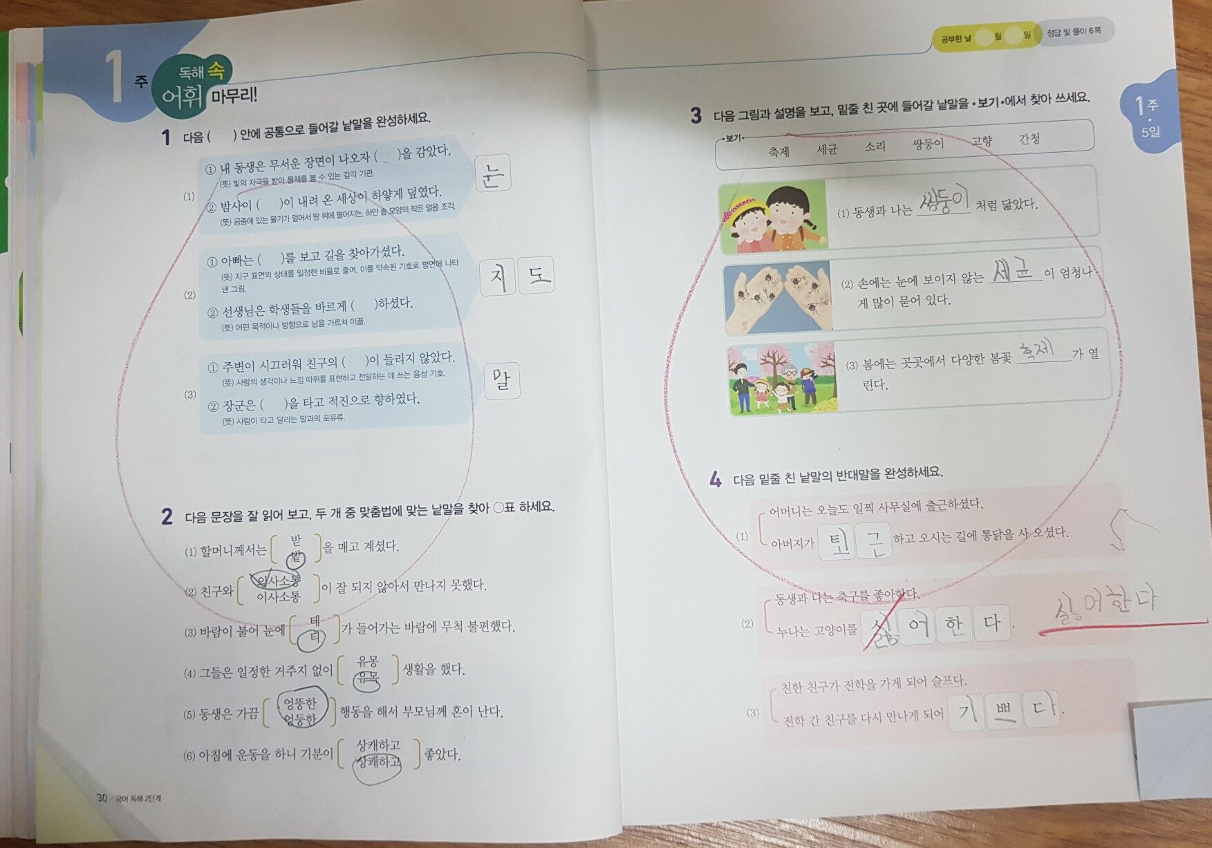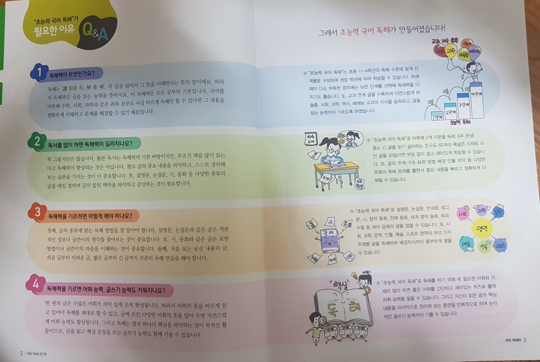요즘 초등학생들에게도 국어 독해 문제집이 유행인가보다.출판사마다 새로운 독해 문제집을 출시하고 있다. 수능에서도 국어 영역이 어렵게 출제 되고 있어 독해의 중요성이 대두되고 있는 시기에 동아 출판사에서도 초등학새들에게 알맞은 국어독해 문제집이나왔다. 초등 국어 독해와 어휘를 한 번에! 초능력 국어독해 "초능력 국어 독해"가 필요한 이유 질문과 답변을 형식을 통해 궁금증을 해결해 준다 1.독해력이 무엇인가요? 2.독서를많이 하면 독해력이 길러지나요? 3.독해력을 기르려면 어떻게 해야 하나요? 4.독해력을 기르면 어휘 능력, 글쓰기 능력도 키워지나요? 이런 질문에 답하면서 왜 "초능력 국어 독해"가 필요한지를 설명해주고 있다. 이 파트는 엄마들이 꼭 읽어야 한다! "초능력 국어 독해" 를 학습하는 방법 1.독해 미리 보기 2.하루 2개 지문 독해 도전 3.지문 속 어휘퀴즈 4.핵심 내용 파악부터 요약까지 5.어휘로 한 주 마무리 6.친절한 정답 풀이 공부 방법도 자세히 알려주니 엄마표로 진행하기에 딱이다! 독해 문제 풀는것 못지않게 어휘도 꼭 확인할 수 있게끔 되어 있어 이 점이 다른문제집 보다 더 신경쓴게 보였다. "초능력 국어 독해" 의 차례 하루 4쪽 6주 완성! 전체적인 독해 내용을 한 눈에 볼 수 있다. 사회, 과학,문학, 예술/인물/스포츠, 문학, 어휘로 마무리 하기 다양한 종류의 글을 접하고 문제와 어휘 학습깢ㆍ 탄탄한 구성에 놀랐다 1일 사회 우리 가족을 소개할게. 다양한 가족의 모습을 소개하는 글이다. 직접 가족 소개하는 글과 가족 신문 형태로 소개하는 글까지. 틀린 문제는 엄마랑 확인하며 다시 풀기를 시켰다 어휘 퀴즈도 빠짐없이 풀게 했고, 어려운 어휘는 예를 들어 엄마가 직접 설명하기도 했다 독해 속 어휘 마무리! 재미있는 초성퀴즈도 나와 공부가 아닌 놀이로 느껴 신나게 풀었다. 이렇게 매일매일 다른 갈래의 글을 접할 수 있어 독해력도 길러주고 배경지식도 풍부하게 쌓을 수 있다. 독해력을 길러 주며 재미있는 퀴즈 형식으로 어휘도 늘리고 핵심 내용을 정리 해보는 훈련으로 글쓰기에게 자신감을 길러준다. 하루 4페이지 부담없이 국어 공부습관 잡기에 정말 좋은 교재라고 생각한다. *출판사에서 제공하는 책을 읽고 작성한 리뷰입니다