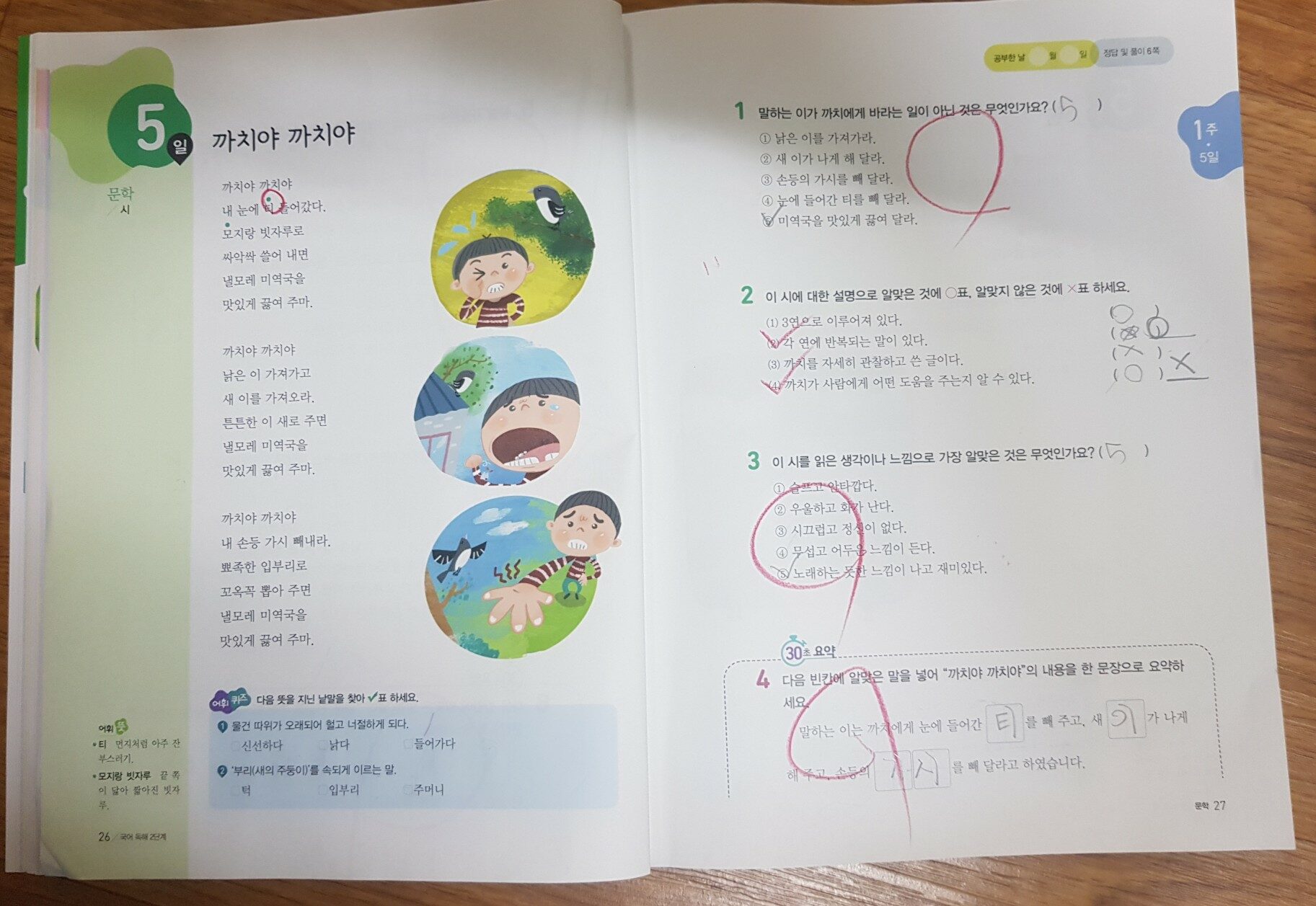 하루 한장 쏙셈하루에 한장 4쪽 쏙 뽑아 셈하세요간단하다쉽다.그리고 재미있다.10분 공부로 교과서 연계 계산력 강화!쏙 비법1쏙셈으로 교과서 기본 학습 초등 수학의 80%가 연산.교과서 단원별로 익혀야 할 연산 문제로 구성하여 기초 실력을 다져 준다쏙 비법2원리로 터득하는 탄탄한 연산 실력쏙셈의 연산 원리 학습을 통해 연산 과정을 숙달하고 수의 관계를 익힌다.쏙 비법3재미를 통한 수학적 창의력 향상다른 그림찾기, 숨은 그림찾기가 창의력을 길러 준다는 사실! 쏙셈은 재미있고 다양한 퍼즐로 창의력을 향상시켜 준다.사실 우리 딸은 이걸할려고 쏙셈을 빨리 푼다. 엄마가 안 보일때는 퍼즐부터 먼저풀기도 한다.엄마표로 진행할 수 있게 마련된학습계획표과 활용지도법매일매일 꾸준하게 공부하는 습관을 가지는게 중요!엄마쌤을 위한 쏙셈 활용 지도법학습 시간과학습 능력에 따른 학습 계획표도 조절 할 수 있고 학습 방법과 주의 사항도 참고할 수 있다.수학!어렵다는 생각지겹다는 생각힘들다는 생각이 모든 잘못된 생각을 날려 버리기 위해하루 한자 쏙셈을 추천한다.