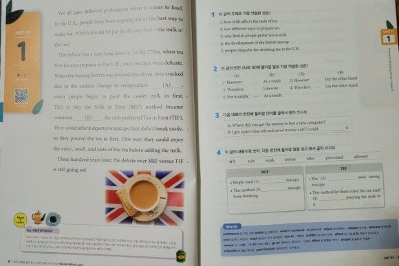 스마트리딩의 특별한 이유는 최신 이슈와 관심사를 반영한 흥미로운 리딩 지문으로 구성되어 있다. 그리고 각 지문마다. Read & Learn 코너에서는 지문과 관련된 배경지식을 제공하여 영어 공부와 함께 상식도 넓힐 수 있게 한다. 주제 찾기나 제목 찾기, 문장 삽입 같은 기본 유형의 문제에서 단어 찾기, 요약하기 같은 서술형 문제와 심화 문제, 도표 문제까지 학교 내신 시험에 대비할 수 있고 더 나아가 수능, 모의고사 유형을 미리 만날 수 있어 만족스럽다. 독해 지문의 내용도 재미있다. 80:20법칙, 사랑니, 카페인이 들어간 에너지 드링크 와 같이 상식과 요즘 아이들의 일상과 관련된 내용을 포함하고 있어 어려운 공부가 아닌 재밌는 영어 공부가 된다.