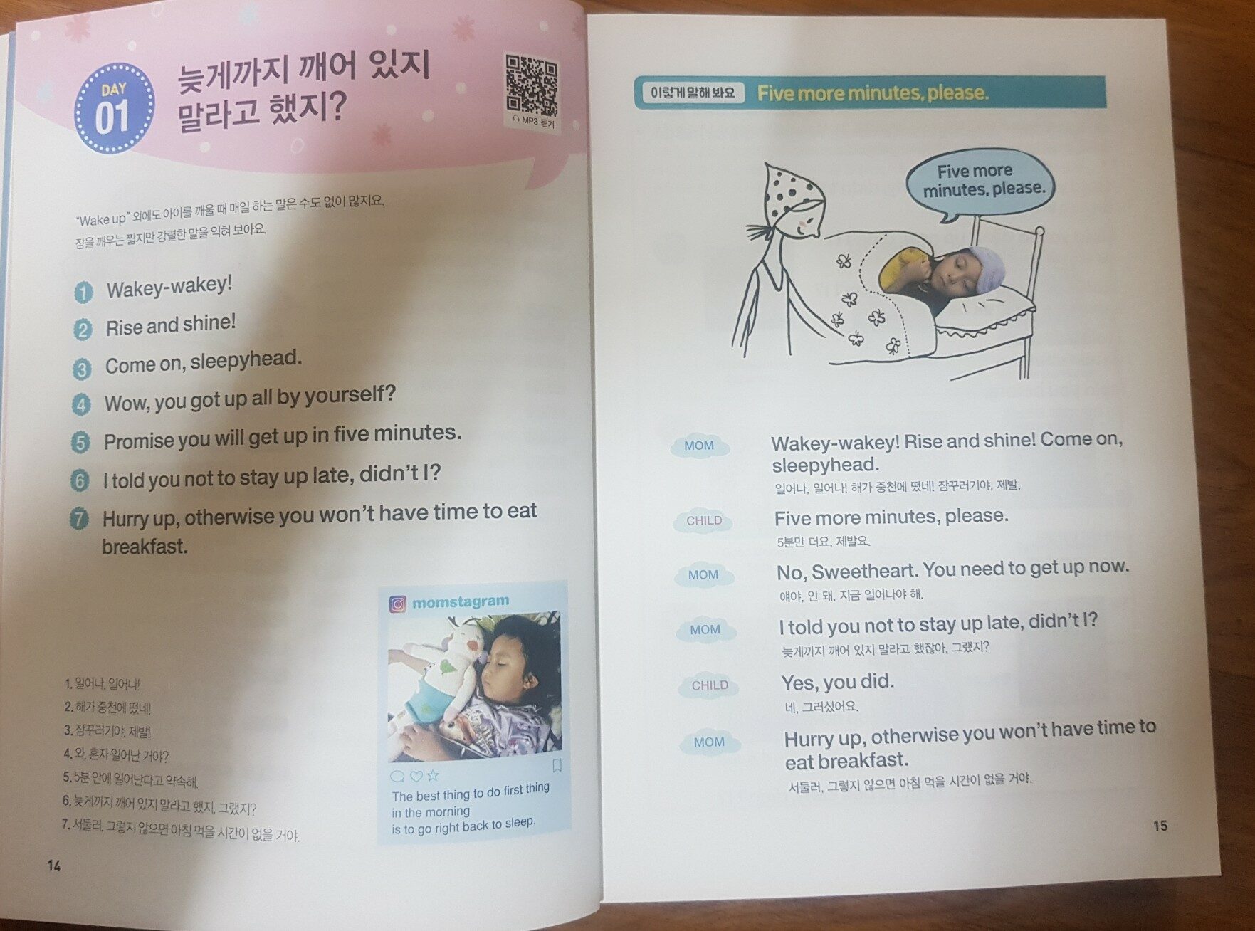 이 책이 특히 마음에 들었던 점은 CD나 출판사 홈페이지에 접속하여 MP3 다운이 아닌 QR 코드를 이용하여 바로바로 대화문을 들을 수 있다는 점이다. 휴대폰으로 QR코드를 인식하여 MP3를 한 번에 들을 수 있는 페이지에 바로 나온다는 점이 편리하여 좋았다. 물론 홈페이지에서나 네이버 오디오 클립도 MP3rk 이용 가능하니