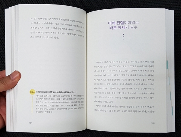 되었습니다. 한가지 원인으로 인해 다른 질환이 추가적으로 생기는 경우가 흔하다고 합니다. 그래서 병원마다 진단명이 다를 수 있지만 완전히 잘못된 것이 아니라는 것도 알았습니다. 병원에서 장기간 치료와 운동이 필요하다는 것도 필요한 부위라고 합니다. 따라서, 통증이 느껴지더라도 참고 여러 방향으로 스트레칭을 해 줘야 장애가 남지 않고 회복할 수 있다고 합니다. 책에서는 어깨 스트레칭이 필요한 상태인지를 확인하는 천사 날개 동작을 시작으로 증상에 따른 상태, 운동 방법 및 주의 사항을 사진과 함께 상세히 설명하고 있습니다. 누구나