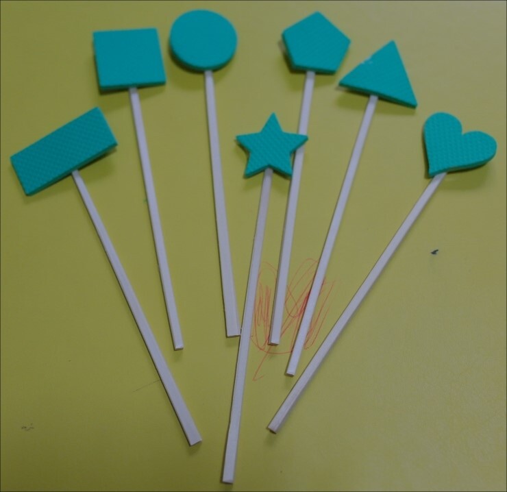 뒷면에 실린 도형퍼즐에 나무젓가락을 붙여 도형막대를 만든후