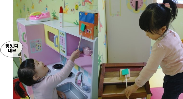 집안 곳곳을 돌아다니며 일치하는 물건을 찾아보도록 했어요!!