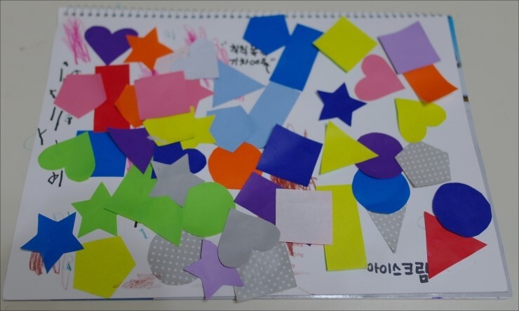 요래.. 윤후맘이 오려준 모양종이를 잔뜩 붙여