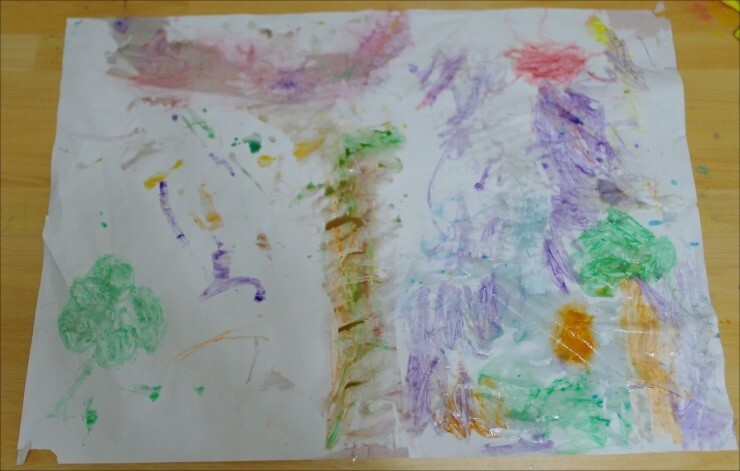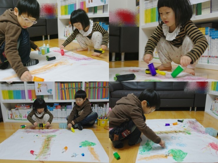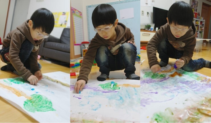 물감놀이라면 오랜 경험이 있는 윤후의 손놀림은 점점 분주해져만 갑니다