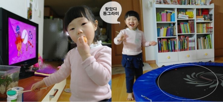 "엄마.. 동그라미네.. 눈사람이다.. 동그라미"