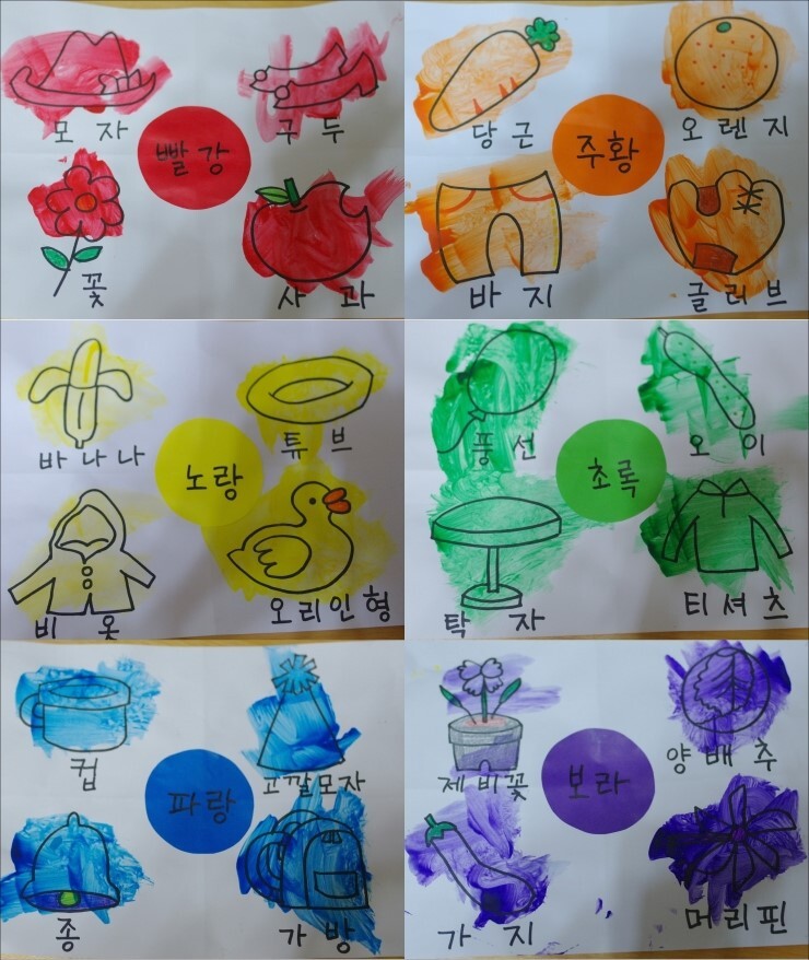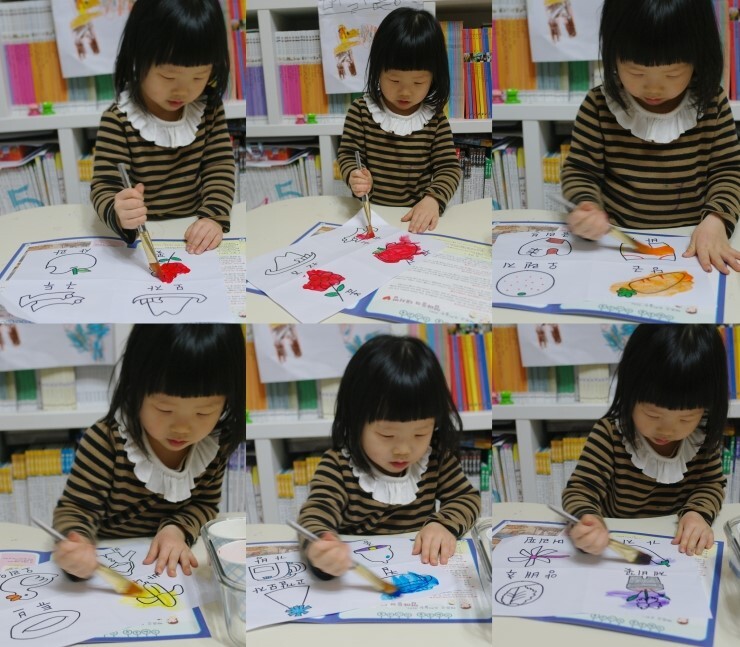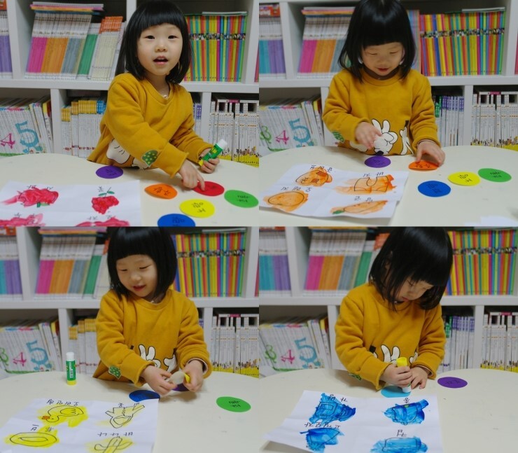 색칠을 하는 동안 색깔과 사물의 이름 말하기도 잊지 않았다죠
