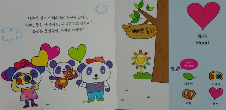 왼쪽 페이지엔 빠뿌와 친구들 혹은 가족들의 즐거운 놀이이야기가 펼쳐지구요