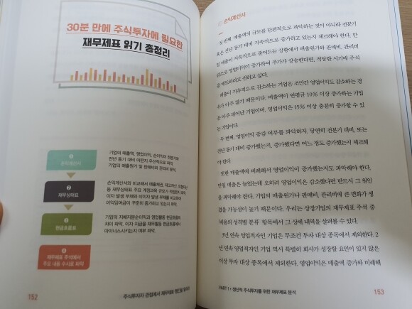 한 권이 총 248페이지인데 그 안에 재무제표를 하나 하나 뜯어 보며 상세하게 설명해주고 있고 읽다보니 30분만에 파악하는 게 정말 가능하겠는데? 라는 생각이 들었다. 내가 가장 좋아했던 것은 간략하게 재무제표 읽기 총정리를 해 놓은 페이지이다. 생각이 정리되고, 내가 책을 읽으며 놓쳤던 부분을 다시 되짚어줄 수 있어서 좋았다. 또 실존하고 있는 기업들의 차트를 예시로 드는 것이 내가 현재 매수한(마이너스..)