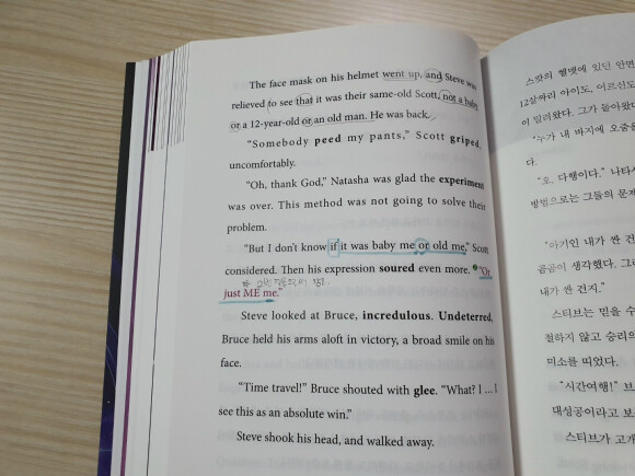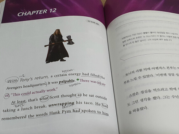 이제 토르까지 만났겠다. 영화에서 가장 중요한 부분인 타임여행할 때 정말 재밌게 봤는데, 스크린 대본으로 공부하면 더 재미있을 것 같아요