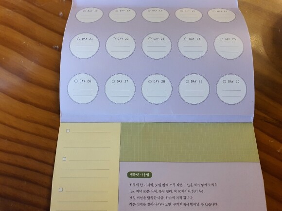 하루에 한 가지씩, 30일간에 모두 작은 미션을 적어 넣은 다음