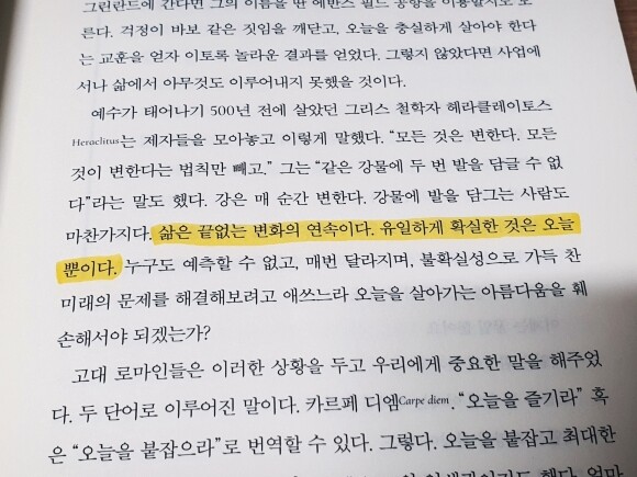 유일하게 확실한 것은 오늘뿐이라고 이야기하고 있다.