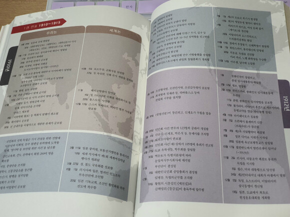 '와 이걸 어떻게 제작을 했을까?'라고 생각을 했는데, 읽으면 읽을수록 정말 이렇게 연구하고 자료를 1차 수집하여 정리하는 것에서 끝난 게 아니라 기존의 연구 성과들을 요약, 배치, 정리하여 만화라는 양식으로 만든 모두가 읽어야 할 대중 도서로 탄생시켰다는 생각이 들었어요. 제1장, 제2장을 시작하기 전에 나오는 앞 장에 우리나라에서 발생했던 사건뿐만 아니라 다른 나라에서의 사건들도 같이 설명해 줘서 동시대에 무슨 일이 있었는지도 파악하기 아주 쉽게 적어뒀더라고요.