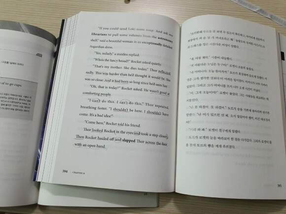 그러자 로켓이 몸을 틀어 토르의 뺨을 세게 후려쳤다.