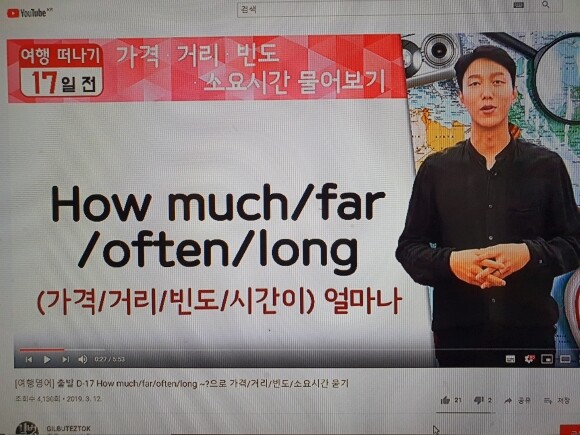 여행이 자유로워지는 영어표현 유투브영상 5분이면 선생님과 함께 금방 여행패턴을 습득할 수 있다.