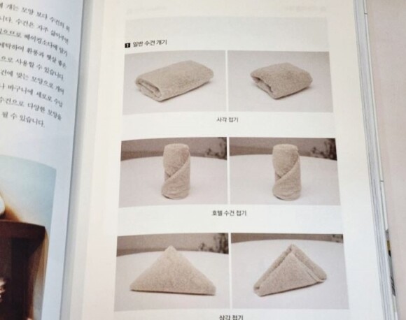 결혼했다고 갑자기 살림박사가 되는 건 아니잖아요? 수건개기도 사각접기외에도 호텔접기, 삼각접기와 같은 방법도 있더라고요. 그 외에도 공병 재활용하기, 화장품 분리수거하기 등 살림을 시작하는 분들에게 유용한 정보들이 굉장히 많이 있었답니다.