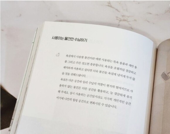 좋은 집에 대한 조건은 사람마다 다양할텐데요. 2021년 3분 보고서에 따르면 1위는 잠자는 공간, 2위가 휴식 공간, 3위가 취미 공간 순으로 인테리어 의향이 높다는 결과가 있었다고 해요. 쾌적함의 시작은 비움에서 온답니다. 쾌적하기위해서는 청결해야하구요. 예전에 정말 다양한 물건들을 사모으는 취미가 있었는데요. 정리할 곳은 없는데 물건만 쌓이고 정리가 안되다보니 나중에 제방을 봤을 때 잡동사니가득한 창고같은 느낌이 들었어요. 35페이지에 있는 저장 강박 자기진단테스트를 해봤는데 제가 속하는 문항이 많아서 깜짝 놀랐답니다. 제가 호더라는 것을 인정해야했고요.