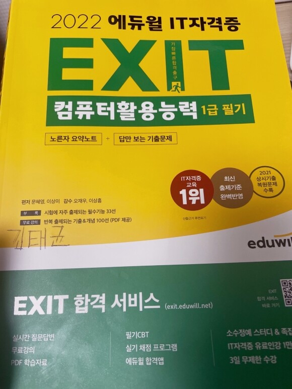 2022 에듀윌 EXIT 컴퓨터활용능력 1급 필기 (단기완성) - 노른자 요약노트 + 답만 보는 기출문제 + EXIT 합격 서비스 제공(반복 출제되는 기출&개념 100선 무료강의/PDF 제공) ㅣ 2022 에듀윌 EXIT 시리즈