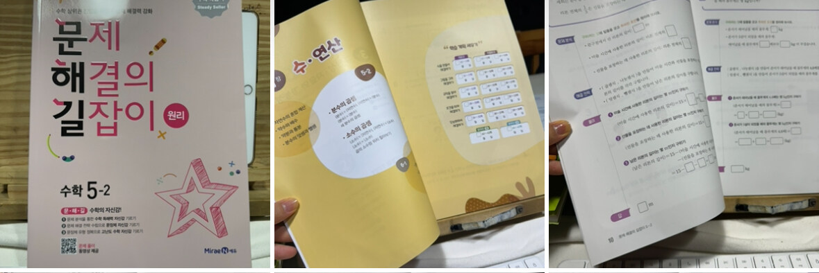 벌써 무더운 7월이 중순이 되어가고 있어요. 2주만 지나면 여름 방학이라서 마음만 급한 엄마는 아직 1학기 끝나지도 않았는데 여름방학이 너무 짧다는 생각이 들어서 2학기 준비를 서둘러요. 이번 초등수학 5학년 2학기를 준비하면서는 문제해결의길잡이를 준비를 하였어요. 아이와 함께 여러 출판사의 문제집을 서점에서 일일이 확인을 해가면서 문제집의 장점이 뭔지 또 우리가 하는 공부 방법과 잘 맞는지 확인 하기위해서 꼼꼼히 확인을 하였어요. 문제해결길잡이 책으로 공부하면서는 수학을 문장제로 공부를 하면서 여러가지 방법으로 생각하여 문제에 접근하는 방법을 배울 수 있어서 좋아요. 수학 상위권에 진입을 위해서는 반드시 문장제 문제를 구조화 하여서 풀어내는 연습이 필요하다는 것을 아는 초등 5학년이 되었으니까요. 이 책을 선택하여 공부를 하면서 갖는 학습목표 문제 분석을 하여 수학 독해력을 높일 것 문제 해결을 어떤 방법으로 할지 생각하는 힘을 기를 것 문장제 문제의 유형은 어떤 것이 있는지 확인하고 문제가 원하는 답을 만들어 낼 수 있을 것 이 책 한권을 여름방학동안 완북 하면서 해결할 목표를 정하고 아이와 함께 계약을 하면서 리워드를 정하기로 하였어요. 어린이나 어른이나 목표와 보상이 확실해야 뭘 하고 싶은 생각이 드나봅니다. 문제해결의 길잡이로 공부를 하는 과정은 식만들기 그림으로 그려서 해결해보기 규칙을 찾아보고 조건을 따쳐가며 해결하고 단순화해서 해결해가는 과정을 알아보고 마무리 문제를 풀어가며 그동안 찾지 못했던 부분이나 구멍이 있는 부분을 찾아가면서 완벽한 갈무리를 할수 있도록 체계적으로 공부를 하도록 도와주어 이 책을 만드신 분들의 출제 목적을 정확히 이해 할수 있을 것 같고 배우고 가르치는 입장에서 완벽히 이해 할 수 있도록 해 주어서 매우 만족스러웠습니다.
