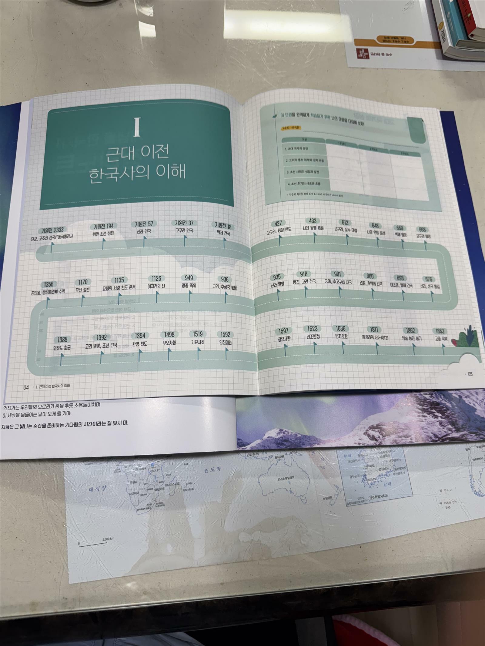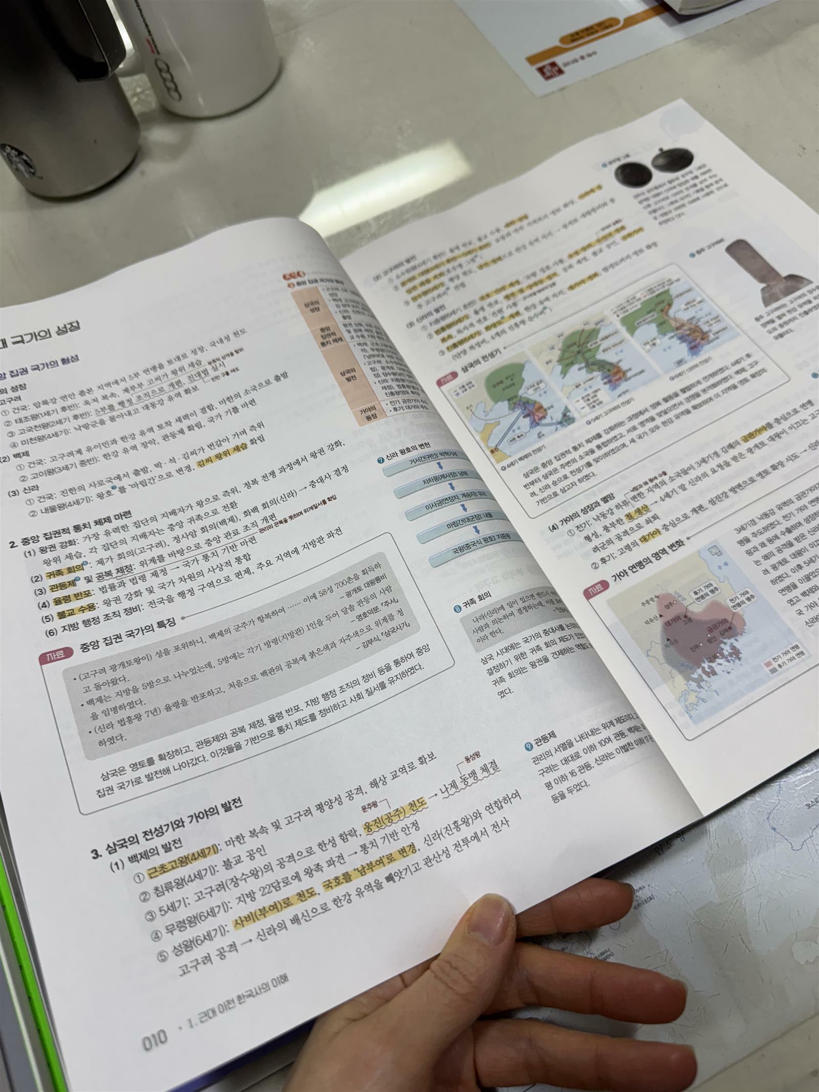 [지학사]개념풀 한국사1 겨울방학에 국사 총정리!! 지학사 개념풀로 한국사 공부를 정리 해 보는 겨울 방학을 지내고 있어요. 겨울 방학동안 이책 한권 뽀개기를 목표로 방학 시작과 함께 꾸준히 풀어가고 있어요. 이책으로 공부하면서 얻게 되는 가장 좋은 점은 국사 정리 노트 였어요. 작년 여름 방학에 한국사능력 검정시험을 보면서 나름 한번 정리를 해 가면서 국사를 공부 했다고 생각을 했는데 아직 완벽한 정리가 되지 않았는지 잊어버린 부분도 많이 있었는데 무엇을 잊었는지 조차 기억이 가물가물했었지요. 저는 개인적으로 정리 노트가 참 도움이 되었어요. 빈칸 채우기가 생각보다 더 도움이 되는게 문제 풀이 하면서 오답 부분을 정리하지만 단편적이라서 약간 아쉬웠는데 개념노트를 또 손으로 쓰자니 너무 힘든작업이라 고민이 되었는데 이책으로 나온 개념 노트는 순서대로 서술해서 여러번 읽어가며 외우기에 도움이 많이 되었어요. 본책에 설명과 함께 첨부된 사진들이 매우 정리가 잘 되어서 이해하고 익히고 외우는데 도움이 되어서 매우 만족하는 문제집이였어요. 무엇보다 매일 공부를 하는데 지루하지 않게 공부 할 수 있어서 좋았습니다.