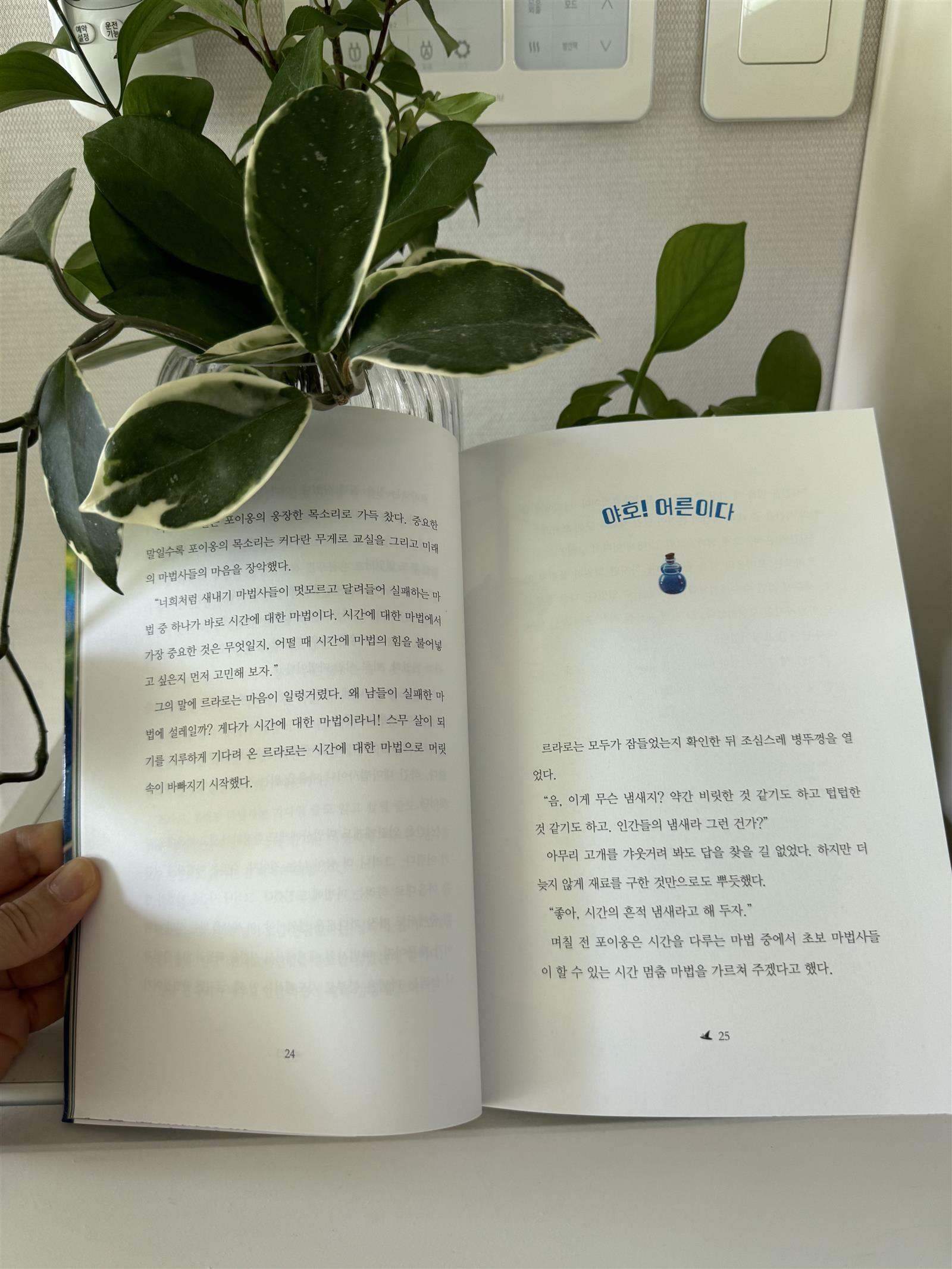 시간을 뛰어넘어 빨리 어른이 될 수 있다면! 판타스틱한 마법 세상에서는 무엇이든 가능할까? 그린애플에서 초등 중고학년 대상 도서인 『엉뚱한 마법사 르라로: 진짜 어른이 되는 마법을 찾아서』가 출간되었다. 이 책은 『소문 바이러스』, 『감정 부자가 된 키라』, 『우리 집이 위험해!』, 『스티커 전쟁』을 쓴 최형미 작가의 신작으로, 마법을 통해 우리 삶의 소중한 가치를 되돌아보게 한다. 이 책은 마치 물 위에 뜨는 맑은 기름처럼 인간 세계 위에 덧대어 있는 또 다른 세계가 있다고 알려 준다. 바로 마법사들이 사는 세계다. 마법 세계에서는 시간이 인간 세계보다 두 배로 빨리 흐른다고도 한다. 흥미로운 마법 세계의 이야기는 당연하게 누려 온 일상의 소중함을 잃어버린 아이들 앞에 신비로운 마법과 환상의 세계를 펼쳐 보인다. 성장 동화’라는 수식어가 손색없을 만큼 맑고 순수한, 그래서 더욱 환상적이고 가슴 뭉클한 이야기가 많은 이들에게 희망과 위안이 되어 줄 것이다. 이책으로 우리는 시간에 대해 이야기를 하기에 좋았다. 주인공 르라로는 빨리 어른이 되고 싶어서 어른이 되는 마법약을 만드는데 어떻게 동생이 먹어버려서 잠깐은 하고 싶은 일들을 하고 좋았지만 흰머리 숭숭..나는 늙은이로 변해버려 놀라고 그 일들을 해결해 나가는 과정이 흥미진지한데. 우리 아이와 함께 이 책을 읽어보고 함께 이야기 나누기를 하였어요. 시간의 소중함도 좋지만 그 나이에 해야 할 일들에 대해 이야기를 나누었지요. 요즘 교실에서 아이들이 어떤 주제로 이야기를 하는지 물었어요. 의외로 집안의 재산이나 명품들 그리고 어떤 자가용 자동차인지에 관심이 있다고 하네요. 조금 충격이였답니다. 오늘은 르라로와 동생 맥키는 왜 빨리 어른이 되고 싶었을까 하는 이야기를 해보았어요. 맥키가 어른이 되어서 해 보고 싶었던 일들은 무엇이였었나? 막상 어른 마법사가 되어 실제로 해 보니 맥키는 얾마나 만족을 하였는지 그리고 맥키는 그 즐거움을 위해 포기한 시절에 대해 어떤 마음이였을지에 대해 이야기를 나누었지요. 이 책을 읽고 우리아이는 어른이 된다면 무엇을 하고 싶은지에 대해 물어보기도 하고 답을 들어보면서 아이가 생각보다 많이 컸다는 느낌을 받았어요. 학교에서 아이들을 잘 교육을 시켜 주어서 그런지 경제적으로 독립을 하기위해 어떻게 해야하는지 부분부터 이야기를 하더라고요. 좀더 추상적이고 애매한 답변을 할 것이라고 예상했는데 말이지요. 하지만 지금은 학생이라서 해야 할 공부들을 차근히 해 나가야 대학을 갈 수 있다는 다소 현실적인 말들만 나와서 조금 의아했는데 반대로 질문을 받을때 약간 당황을 했어요. 만약 엄마가 다시 어린 시절로 돌아가면 무엇이 해보고 싶은지에 대해 질문을 받았는데 참 생각이 많아지더라고요. 엉뚱한 마법사 르라로 책을 읽으면서 책 내용에 대해 생각을 해보고 르라로와 맥키의 각각의 관점에서 이야기를 나누기에 매우 좋은시간을 갖을 수 있어서 좋았고, 우리집처럼 엄마랑 아이가 각자 읽고 책 이야기 나누면 세대공감 또는 마음나누기에 좋은 시간을 갖을 수 있을 것 같아 참 좋은 것같아요.