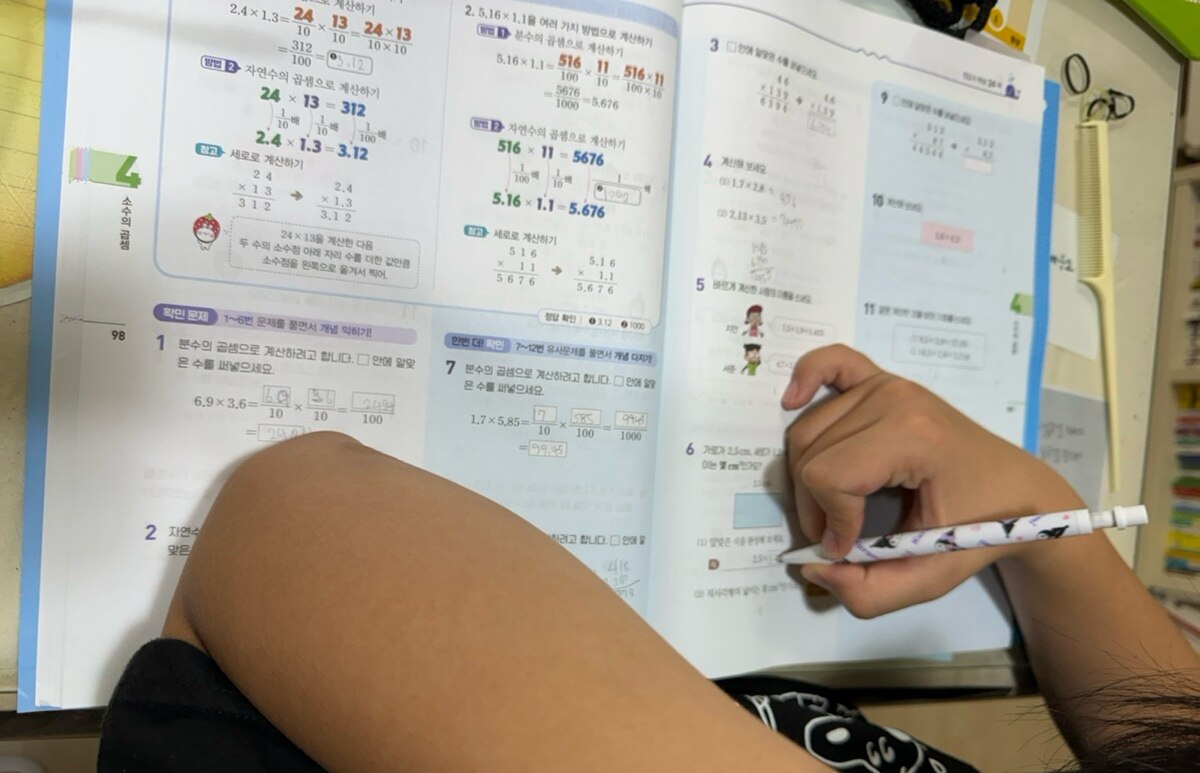 이책으로 공부하면서 지금부터 방학동안 5학년 2학기 단원을 모두 마스터 할 목표를 세웠어요. 연산으로 수학리더 연산을 유지하면서 기본 개념 그리고 수학리더 연산문제집으로 양치기를 병행하면서 개념을 세우고 문제풀이의 정확도와 속도까지 꽉 잡을 수 있어서 너무 안정적으로 5학년 수학을 준비할 수 있어서 힘이 됩니다.