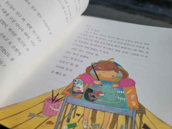 미소는 모든 에너지를 쏟아 그림을 완성했어요.