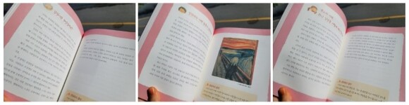 그런데 친구들이 미소 작품 앞에서 수군거리는 모습을 보자.