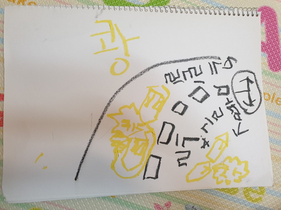 숨은 그림찾기 그리는 거 정말 재밌었다고 하는 아이.
