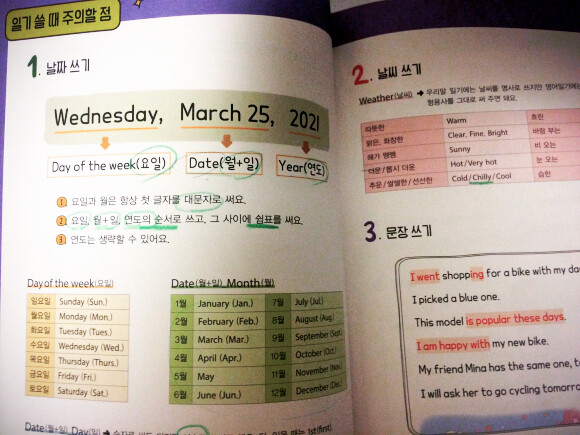그리고, 영어로 일기 쓸때 주의 할점을 미리 읽고 체크해 볼수 있었어요.