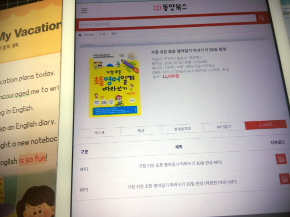 동양북스 홈페이지에 들어가면 가장 쉬운 초등영어 일기 따라쓰기