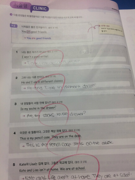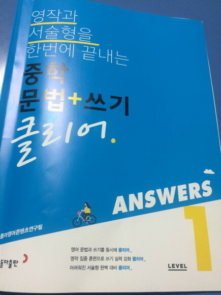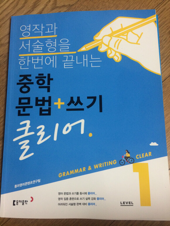 저희는 초등5~6학년부터 시작하는 중학 문법+쓰기 클리어 Level 1 을 공부해보게 되었네요~~