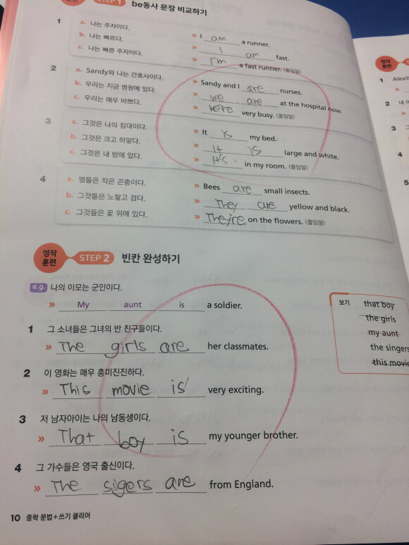 영작 훈련 1,2단계에서는 문장 비교, 확장, 패턴 문장 쓰기등