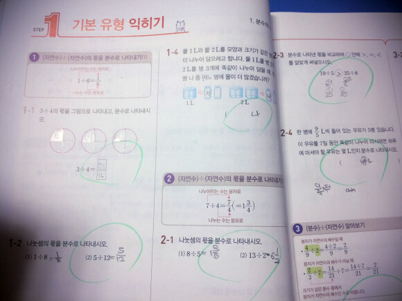 개념 비법에서 배운 개념들을 스텝1 기본 유형 익히기를 풀어보며