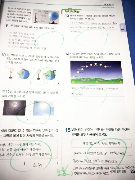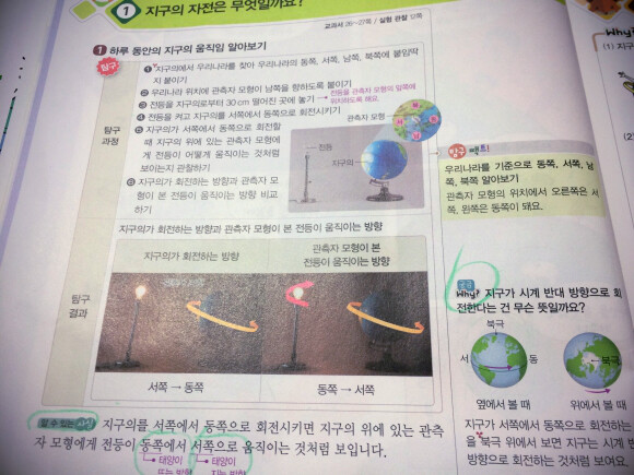 실험 동영상을 본뒤엔 집에서 직접 지구본을 두고 실험도 해보았네요~ㅎㅎ