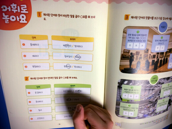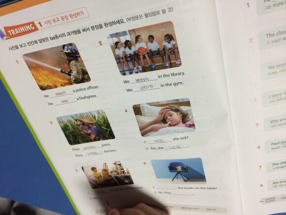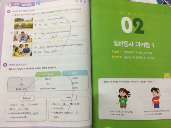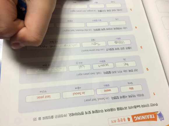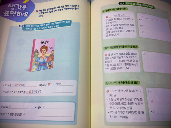 전 활동지가 있어 어휘와 생각을 표현하며 짧은 글을 써보고 답할 수 있는
