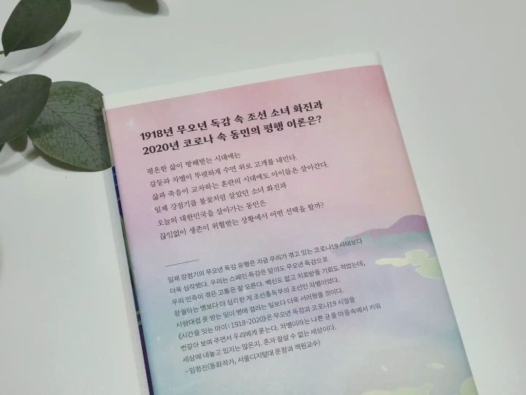 지금 우리가 무오년의 독감을 기억하듯이, 언젠가 미래의 우리의 후손들은 지금 2020년부터의 우리를 떠올려주겠죠. 2021년 9월 15일 현재, 대한민국에서 277989명이 코로나에 감염되었고, 2380명이 사망했습니다. 무오년 그때와는 달리 더 이상의 큰 희생이 없이 우리가 잘 이겨낸다면, 아마 우리의 지금 코로나 역사는 또 다른 '극복의 역사'로서 역사 속에 기록되지 않을까요? 무오년의 화진이 그러했듯, 동민이와 미성이도, 그리고 우리 모두도 코로나19를 이겨낼 수 있길 소망해 봅니다.