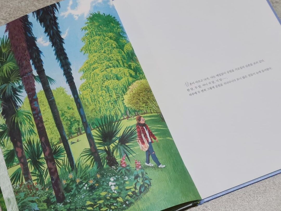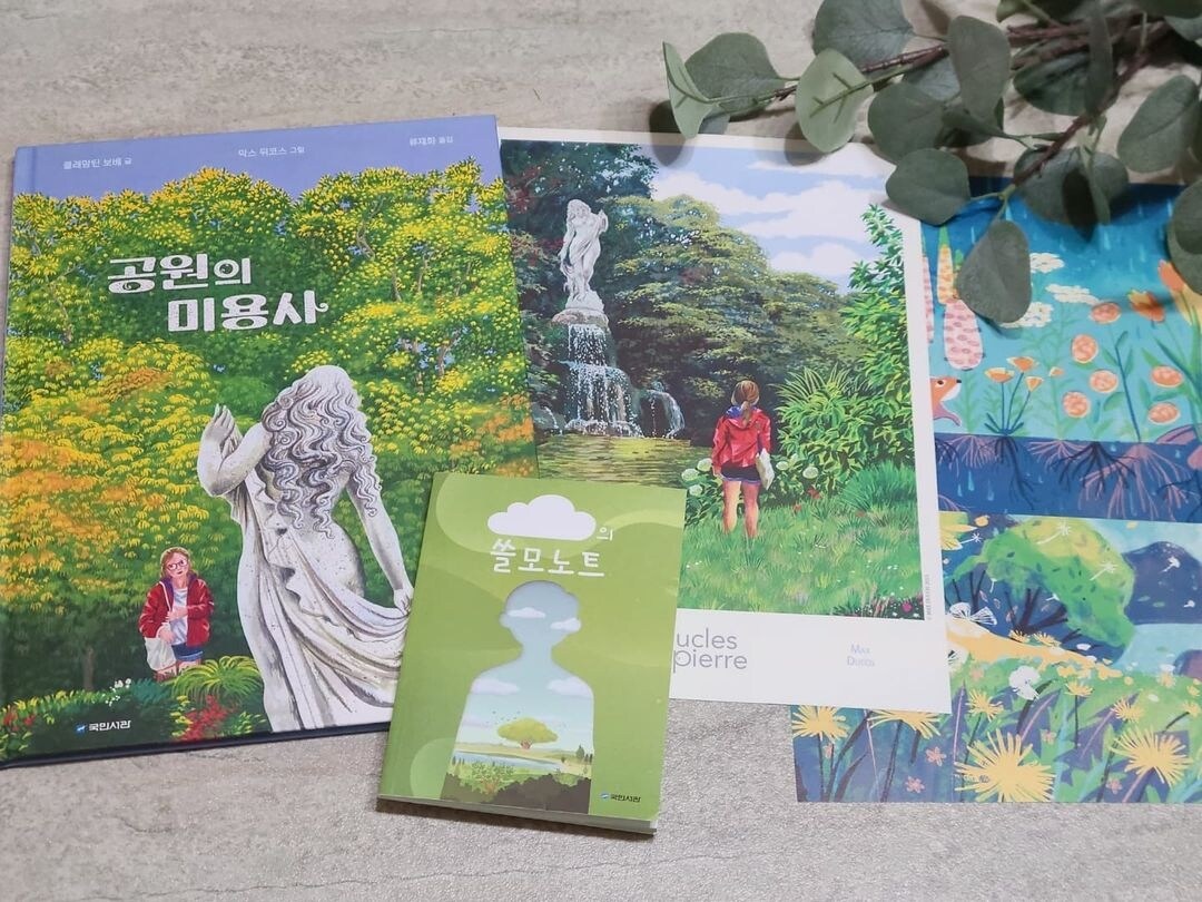 언젠가 프랑스로 여행을 떠날 수 있는 날이 온다면, 막스 뒤코스의 그림책을 들고 책속 공원으로 여행을 떠나고 싶어요. 책속의 조각상들과 숲과 나무들이 어떻게 변화했는지, '당연히' '기꺼이' 있어주는 고마운 존재들을 꼭 한번 직접 보고 싶어집니다.