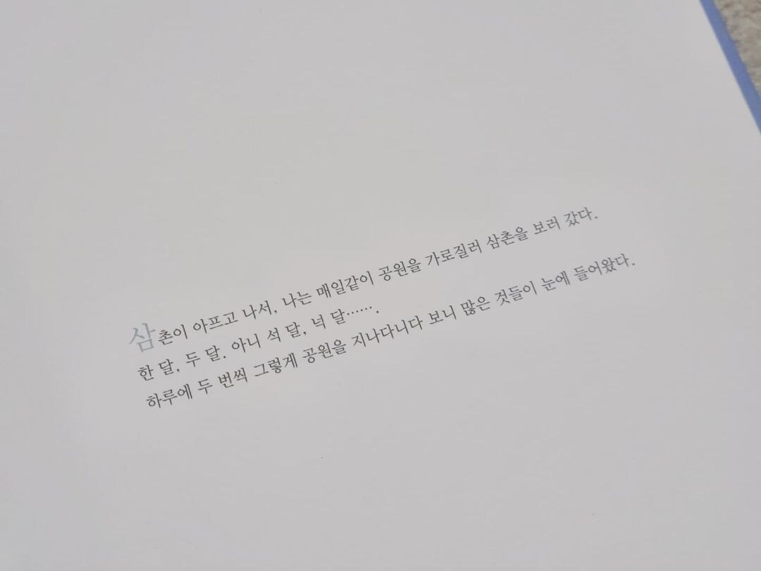 나는 과연 내 주변의 일상에 이만큼 깊은 관심을 가지고 바라본 적이 있었나 생각해보게 됩니다. 아주 작은 변화도 눈치챌만큼, 책속표현을 빌어 "유심히 보는 사람" 이었나 하는 생각을 해봅니다. 내가 주어진 평범한 일상, 내게 매일 곁을 내어주는 공간과 장소, 주변의 사물들과 사람들에 대해 변화를 눈치챌만큼 세심하게 관심을 가지고 살아왔나 생각이 들더라고요.
