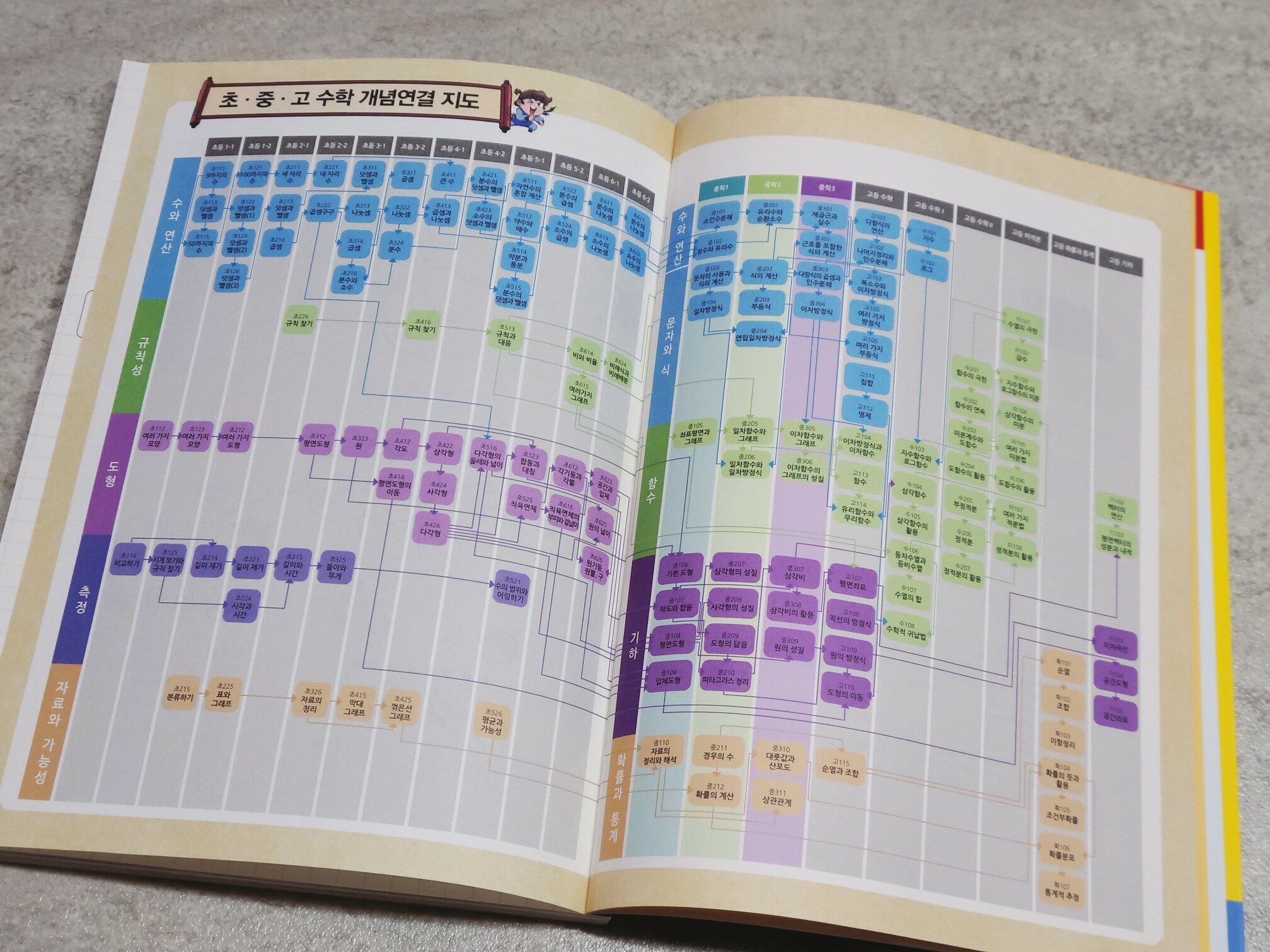 책의 맨 뒤 페이지에 있는 초중고 수학 개념 연결 지도처럼