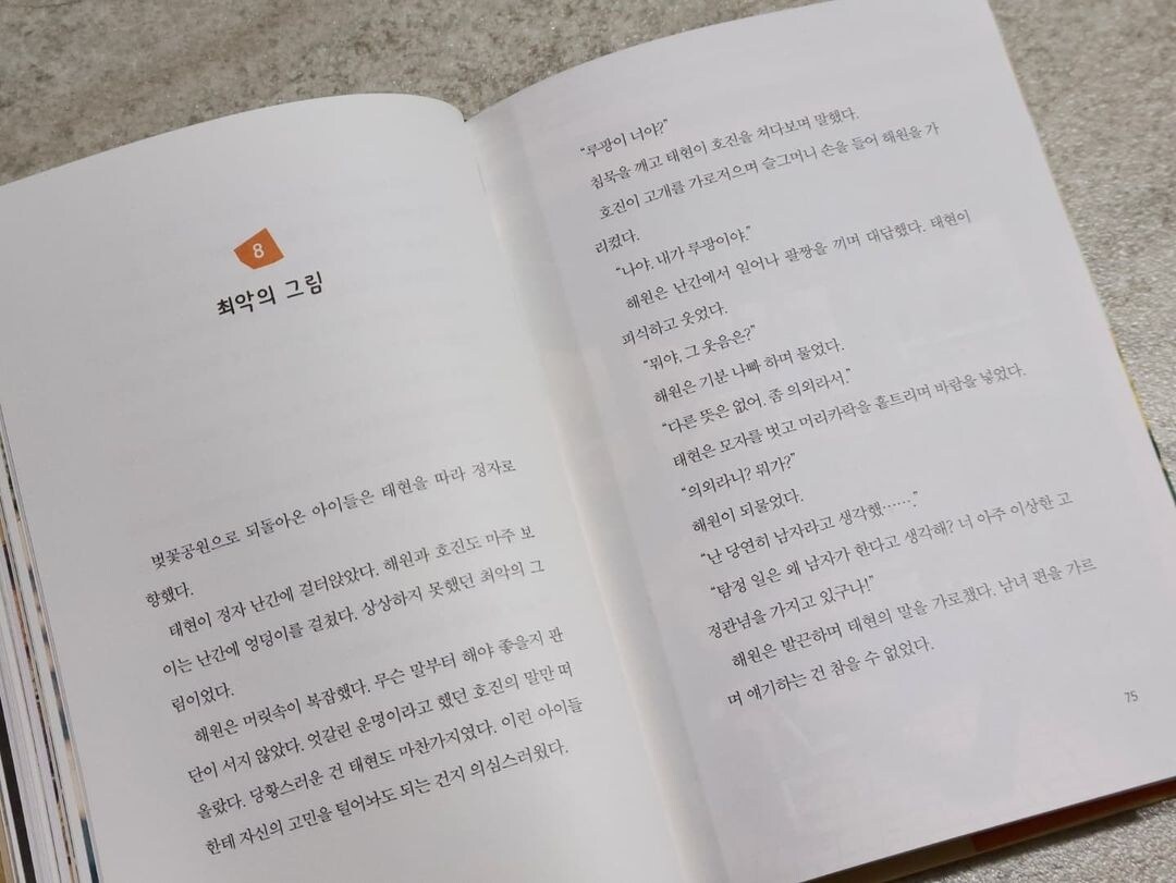 읽는 동안 태현의 마음이 너무 아프게 다가왔다. 그리고 어른들의 감정으로 상처받은 태현이의 마음을 어루만져 주고 싶었다. 많이 힘들었겠다고, 너의 잘못이 아니라고 꼭 말해주고 싶었다. 그리고 내 안의 진짜 나의 마음을 꺼내기 시작한 태현에게 진심을 담아 따뜻한 응원을 보내주고 싶었다.