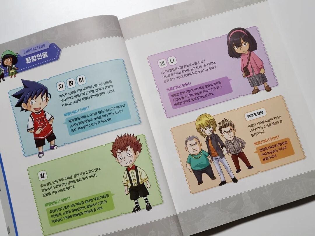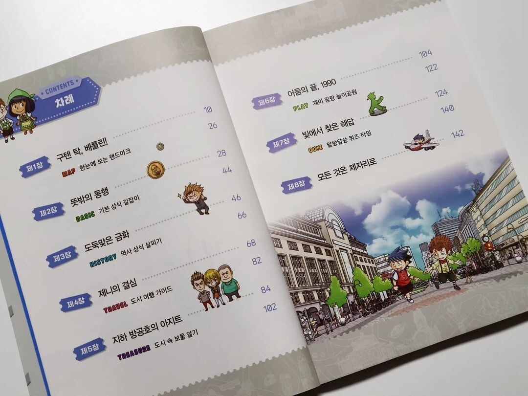 '베를린' 하면 여러분은 무엇이 떠오르나요? 아마 대부분 분단 독일의 잔재인 '베를린 장벽'이 가장 먼저 떠오르는 분들이 많을 거예요. 저 역시도 베를린 장벽이 가장 먼저 떠올랐고요. 독일은 1990년 통일을 맞이하였지만 베를린에는 여전히 전쟁과 분단 그리고 통일의 여러 가지 흔적들이 그대로 남아있다고 해요. 오히려 분단의 역사를 국민들이 더욱 잊지 않고 반성과 다짐을 할 수 있도록 남겨두었다고 해요. 과거엔 전쟁으로 폐허와 같닸던 베를린은 현재에는 자연 친화적인 도시가 되었다고 해요. 또 젊은 예술가들이 모이며 '예술의 도시'가 되었죠. 📚 이 책은 카이저 빌헬름 기념 교회에서 발견된 '빌헬름 1세'를 새긴 커다란 금화를 조사하기 위해 베를린에 도착한 '팡이'가 우연히 만난 독일 소년 '칼'과 동행하며 금화 조사에 나서는 이야기예요. 교회 내부에서 갑자기 화재 사이렌이 울리게 되고 사람들이 대피하는 사이 금화가 사라지고 말아요. 소동이 일어나는 사이 팡이는 수상한 소녀를 발견하죠. 허약한 군인 가문의 도련님인 칼도 수상해 보였고요. ✔'빌헬름 1세'의 금화는 어디로 사라진 걸까요? ✔수상한 소녀와 칼의 정체는 과연 무엇일까요? ✔팡이는 금화를 찾아, 제자리로 돌려놓을까요? 손에 땀을 쥐게 하는 스릴과 추리와 이야기도 재미있고 팡이를 따라가며 만나게 되는 독일 문화도 흥미로웠어요. 독일에 대한 정보는 물론, 지리적인 특징들, 독일의 역사 상식과 여행 관련 정보들도 너무 유용하고 알차게 채워져 있답니다. 알쏭달쏭 퀴즈 타임으로 복습도 할 수 있어요. 독일의 분단과 통일의 역사를 품고 있는 도시, 베를린! 베를린에서 펼쳐지는 보물찾기 대모험!! 책을 통해 재미있는 베를린의 이야기를 만나보세요. 🌿위 리뷰는 도서를 제공받아, 솔직하게 작성하였습니다.