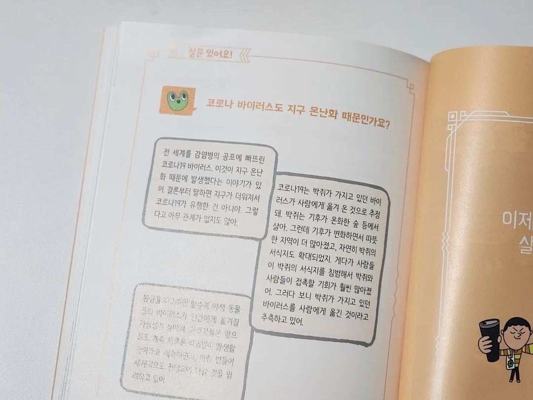 만화로 도입부를 열고, 지식책으로 설명한 후,