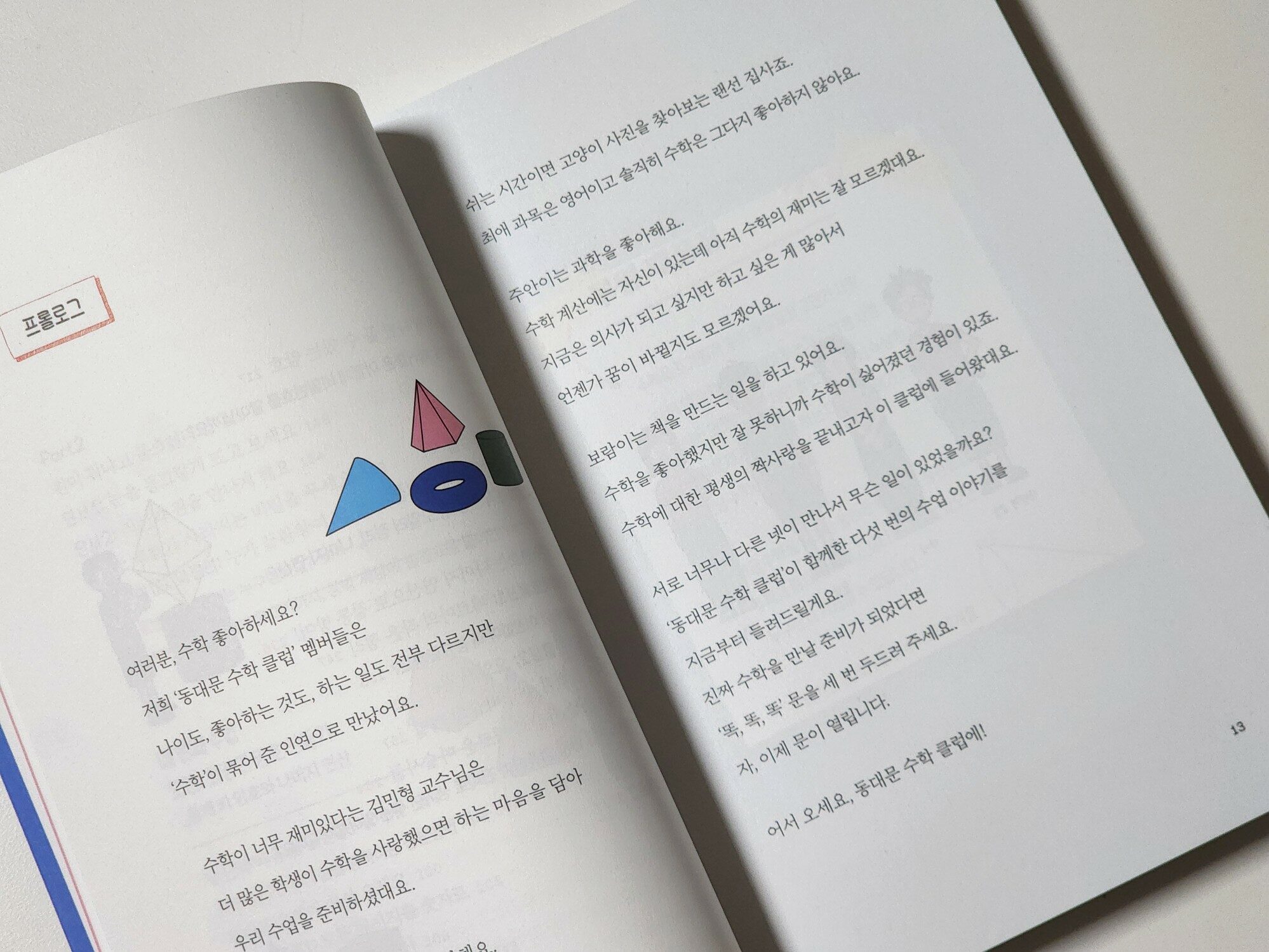 어찌 보면 수준별 학년별 구분도 없다. 교과서에 나오는 수학을 정리한 책도 아니다. 암기를 하거나 문제를 내고 맞추라는 수학 책도 아니다. 그런데 수학 책을 읽으며 모두가 즐거움을 느꼈다. 참 신기하고도 즐거운 경험을 하였다.