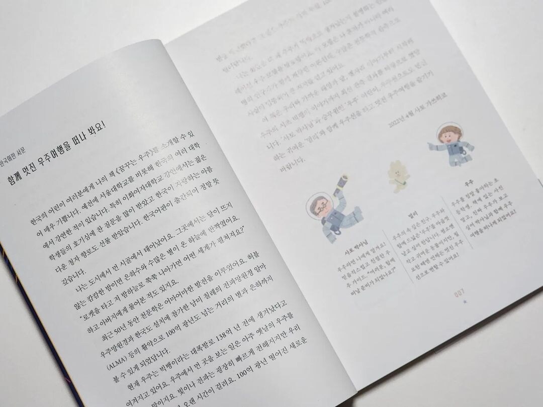 여름 방학을 맞이하여 제대로 된 우주과학 이야기를 읽어보고 싶다면, 우주과학 분야에 대해 궁금하다면, 우주의 세계를 조금 더 깊고 넓게 알아보고 싶다면, 우주를 향한 질문이 가득한 책 그리고 그 해답도 가득한 책 <꿈꾸는 우주>를 강력히 추천하고 싶다.