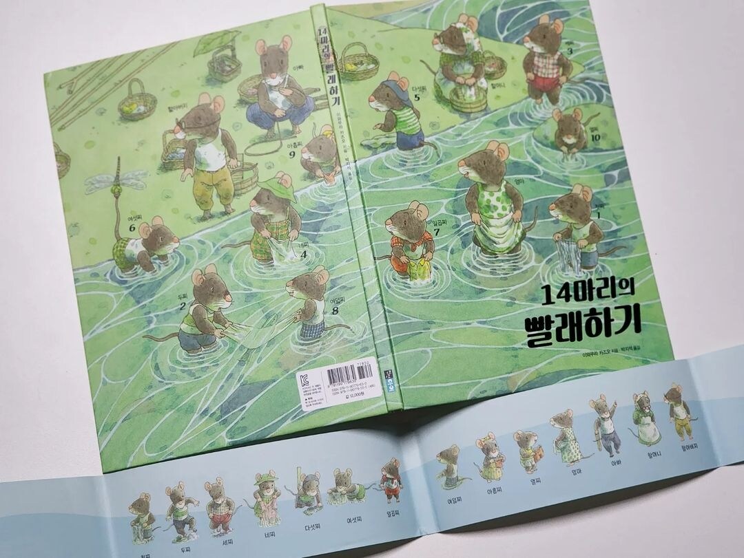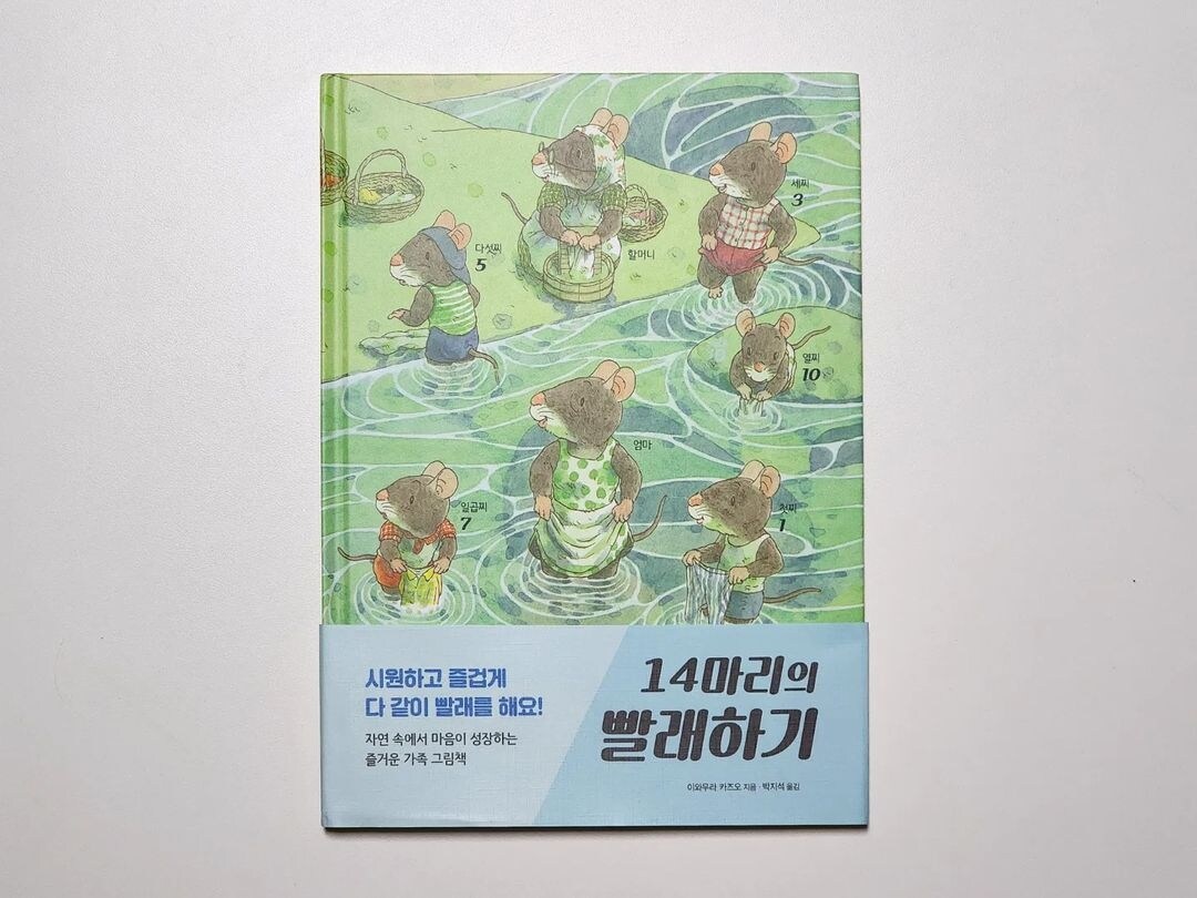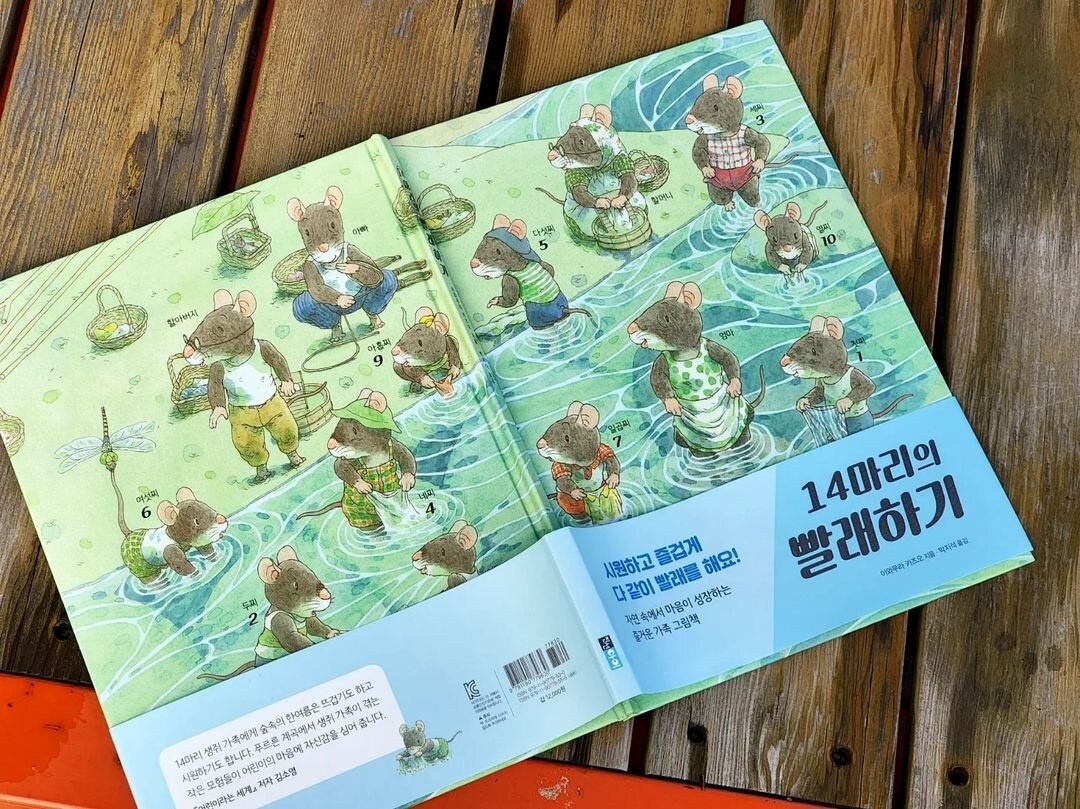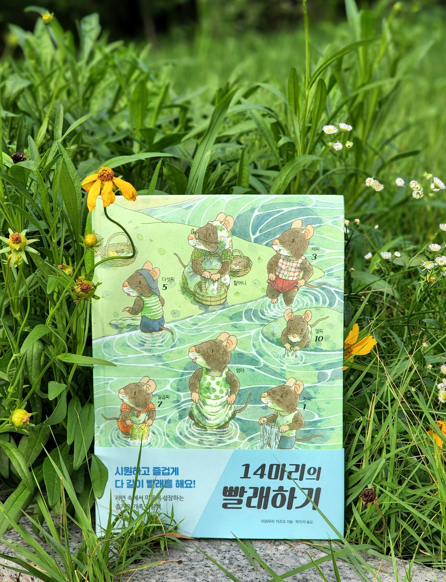 서로 즐겁게 빨래를 하는 14마리 쥐들을 보며,
