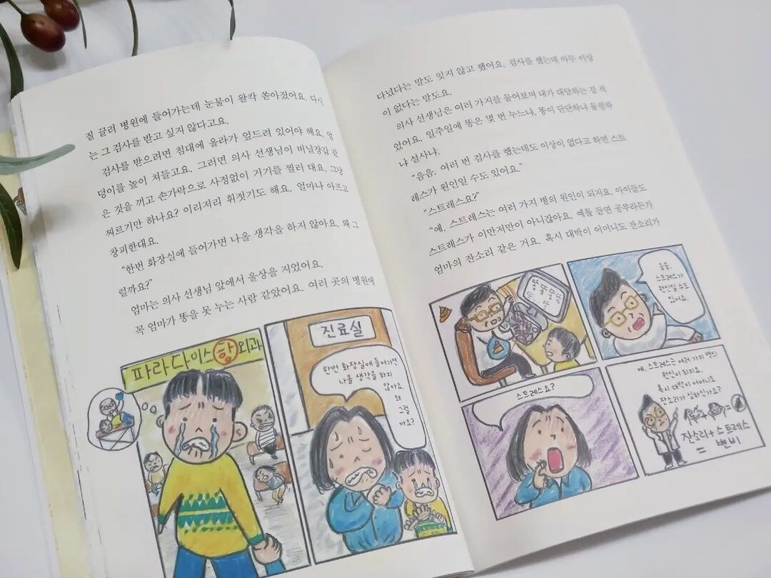 학교에선 단원평가도 망치고, 다른 선생님과 충돌사고까지 낸 대박이 소식을 들은 엄마는 잔소리 강도를 더 높였어요. 아무 기능도 없는 휴대폰을 사주곤 더 세게 감시를 시작하고, 변비를 고쳐본다며 병원도 데려가지 뭐예요. 그래도 명의는 명의인가 봐요. 잔소리로 인한 스트레스가 변비가 된다니 뭔가 좀 아시는 것 같죠?